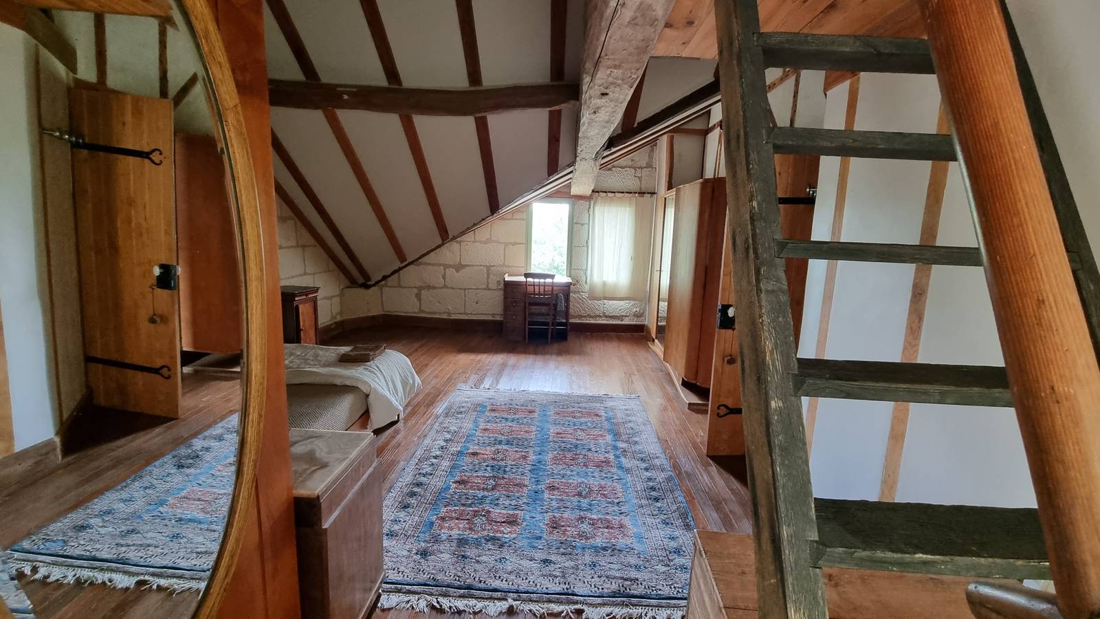 Hébergement atypique avec une fenêtre depuis le salon dans la bergerie Immersion, calme, confort modernité en Touraine