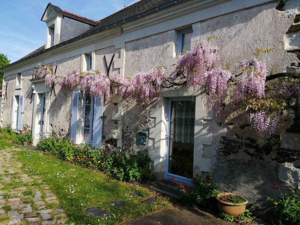 Notre maison de 1864 a obtenu son charme grâce à son époque au cours de laquelle il était coutume de transporter les matériaux par bateaux, et donc le tuffeau (pierre blanche calcaire) extrait des caves du saumurois, qui orne tout le tour et les angles de la maison.