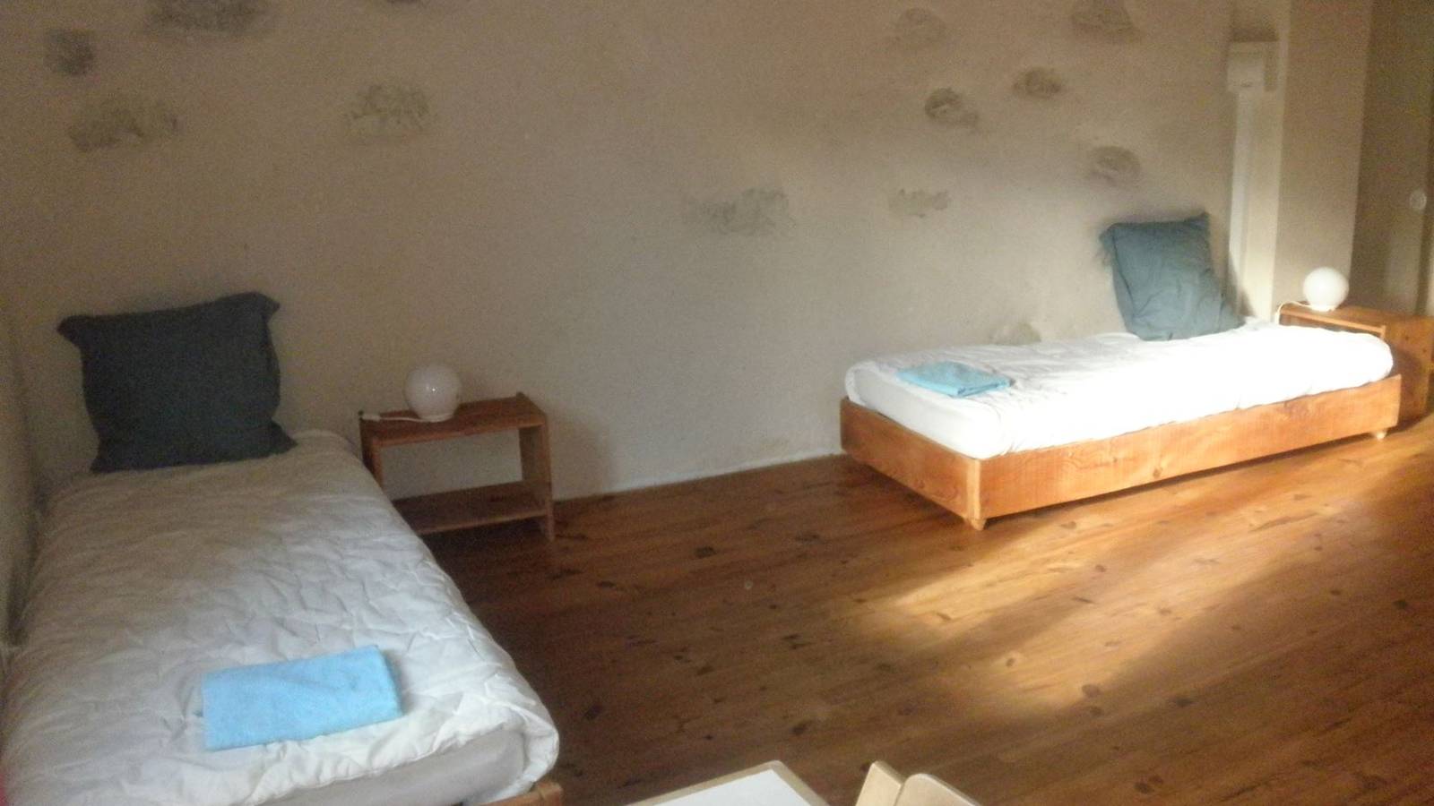 Chambre familiale sur 2 niveaux (lit double en mezzanine). Eco-matériaux: pierre, bois, chaux, chanvre. Sortie indépendante sur terrasse. Possibilité d'ajout de 2 lits. Toilettes séparés de salle d'eau et privatifs