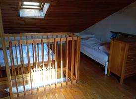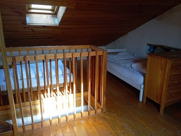 Il y a trois chambres.(15m² et 9m² en bas et 30 m² sous les combles dont 15m² "debout"), une salle de bain avec baignoire et un WC séparé.