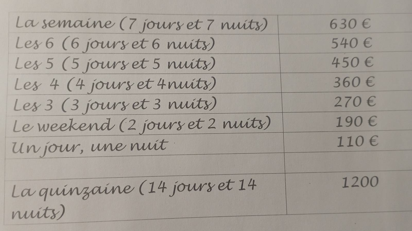 - Ménage : En supplément (70,00 €)