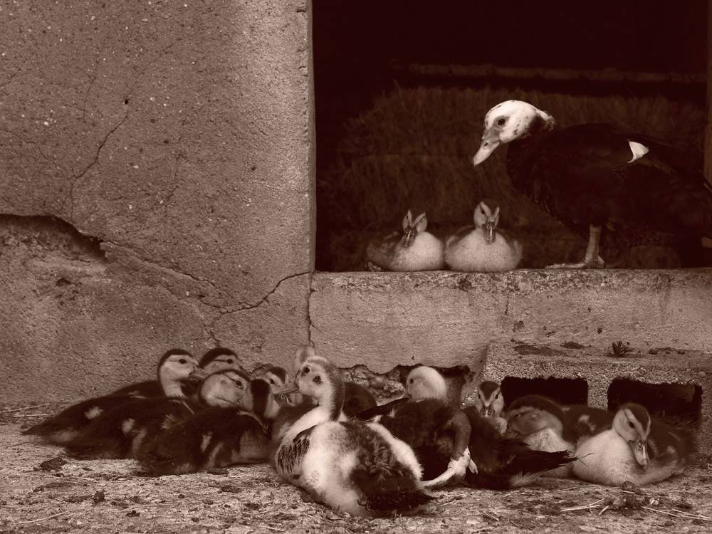 Vous bénéficiez aussi de l’espace commun autour de la ferme, avec chaises longues, portique, cabane et bac à sable pour les enfants. les canards sont en liberté, les poules sont dans un grand parc à côté du portique.
