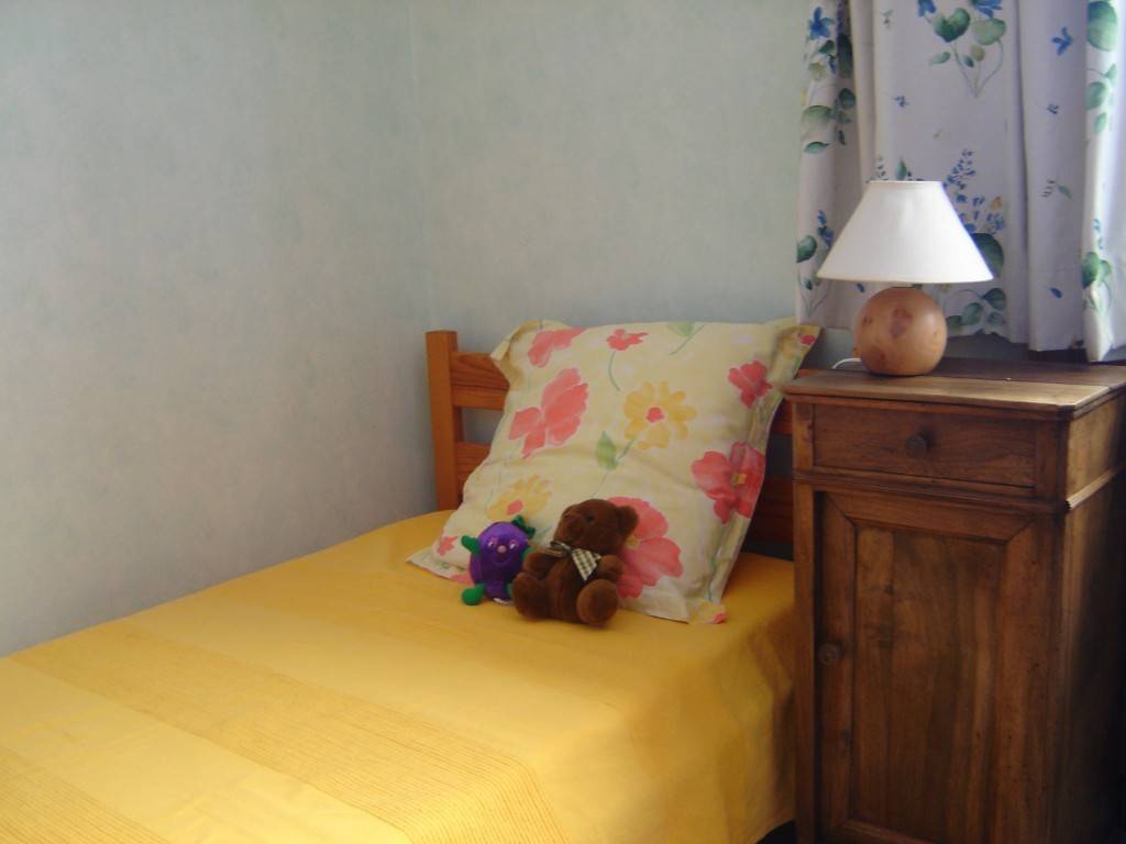 Notre gîte est composé d’une cuisine, d’une salle de douche WC, d’un cellier, d’une pièce à vivre (20 m²) avec un clic-clac 2 personnes avec deux grandes fenêtres, d’une entrée spacieuse, d’une grande chambre (20 m²) comprenant 1 lit 2 personnes (160×200) et 3 lits 1 personne (dont 2 lits superposés) avec une grande fenêtre au soleil levant et l’autre au sud qui donne sur la terrasse, ainsi que d’une autre grande chambre avec un lit 2 personnes (160×200), avec une grande fenêtre au soleil levant. Toute la literie est récente. La cuisine est entièrement équipée (cuisinière avec 4 gaz et four électrique de qualité, cafetière, bouilloire, micro onde…). Vous disposez aussi d’une machine à laver le linge. Sur la terrasse couverte (exposée au sud), il y a un salon de jardin ainsi qu’un barbecue. Dans le jardinet devant le gîte, vous trouverez des plantes aromatiques pour assaisonner vos plats. Vous bénéficiez aussi de l’espace commun autour de la ferme, avec chaises longues, portique, cabane et bac à sable pour les enfants.