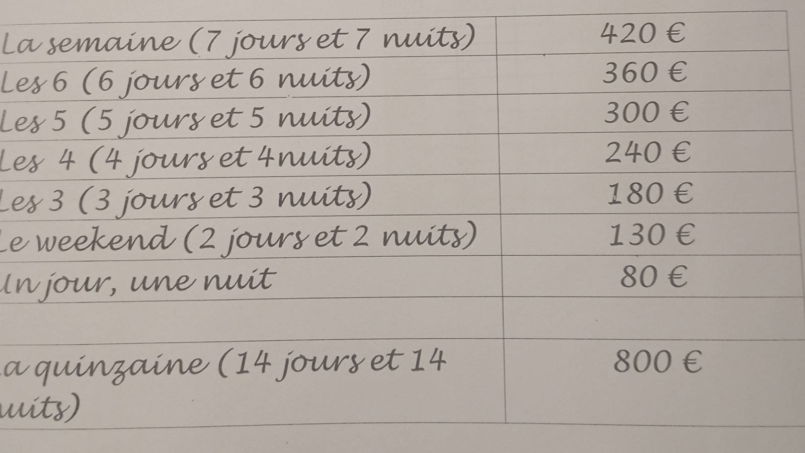 Nous ne fournissons pas le linge de maison.