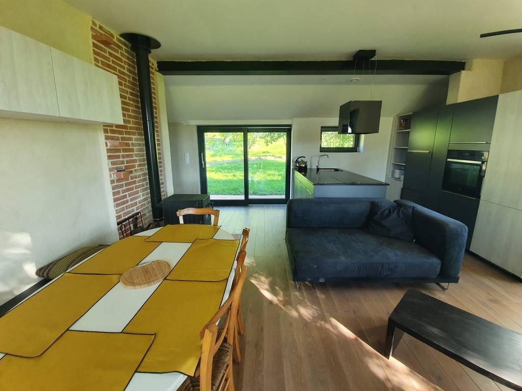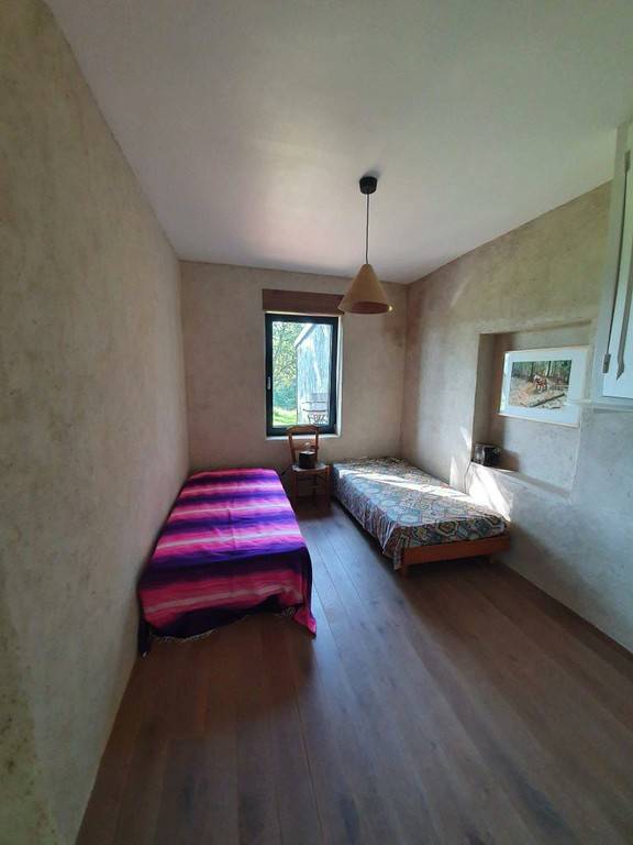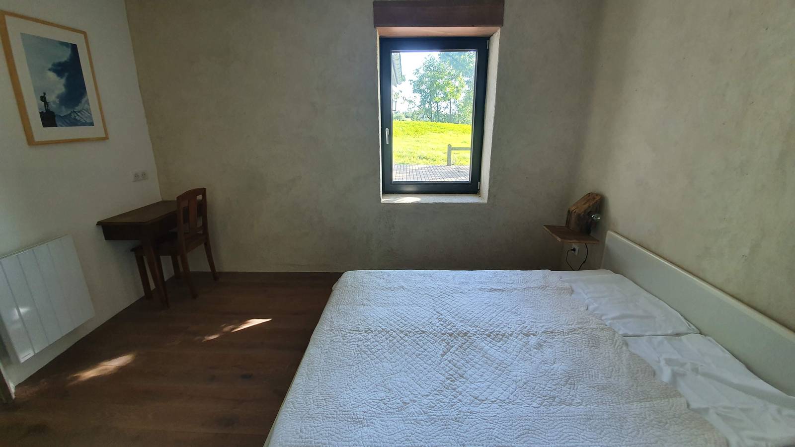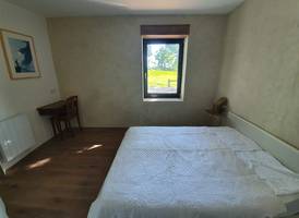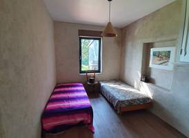 La ferme produit des céréales en agriculture biologique, (blé, seigle) qui sont transformées sur place en farine et en pain et brioches. Une vingtaine de poules et leurs coqs permettent de produire les oeufs pour les brioches. D'une surface de 90m2 de plain pied, le gite a une capacité d'accueil de 6 personnes avec 3 chambres (2 avec lit double et une chambre avec deux lits simples). Indépendant, il bénéficie d'une grande terrasse exposée au couchant équipée d'un salon de jardin. Salon (TV, Wifi) - Cuisine équipée - Salle de bain avec douche et deux vasques - WC indépendant – lave-linge