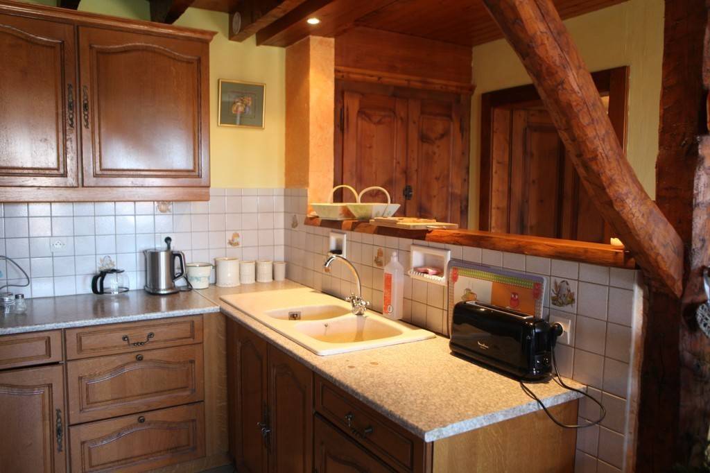 65 m2 appt mitoyen dans une ancienne ferme typique Baujue. Grand balcon. 6 couchages. Pièce à vivre, cuisine ouverte (bouilloire, grille pain, cafetière, appareil fondu, raclette, pierrade, cuit vapeur, gazinière 4 feux four, grand frigo, vaisselle).