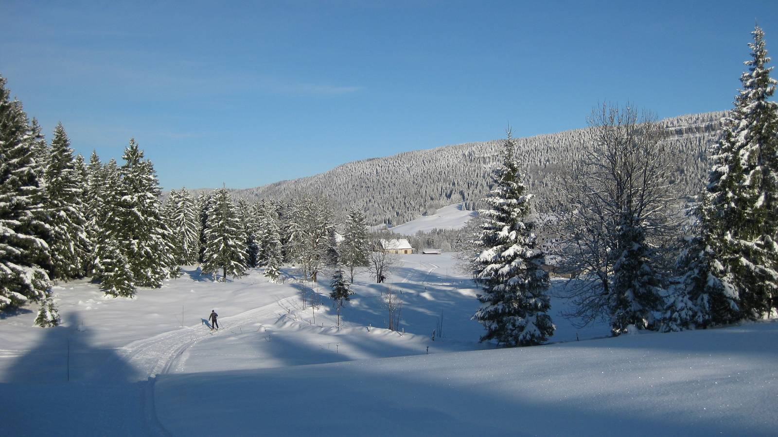 Altitude 1080m/1340m. Morez (jura) 15mn, Pontarlier (Doubs) 45mn- D46 : Chapelle des Bois, petit village de montagne dans Parc régional du Haut-Jura et à la frontière suisse, forêt de sapins, tourbières, lac, combes et pâturages vallonnés à la flore très riche surtout en juin. Notre maison est située dans un petit hameau à 500m au sud du village, 10 route du Jura