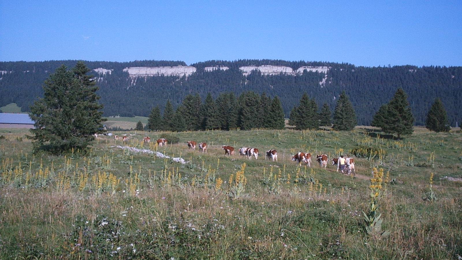Retraités paysans, ferme bio à 100m reprise par les 2 fils:lait,élevage Montbéliardes, Fruitière au village : Comté, Morbier, beurre. Dans notre maison, une ancienne ferme comtoise située face aux rochers du Risoux, à 500m du village, nous vous accueillons dans un gîte ; au rdc un grand hall d'entrée, au 1er étage un gîte spacieux salle de séjour-cuisine et 3 chambres. Chauffage au sol, bois bûches et granulés, matériaux sains et naturels. Connexion Wifi. Tarifs affichés pouvant évoluer selon les saisons.