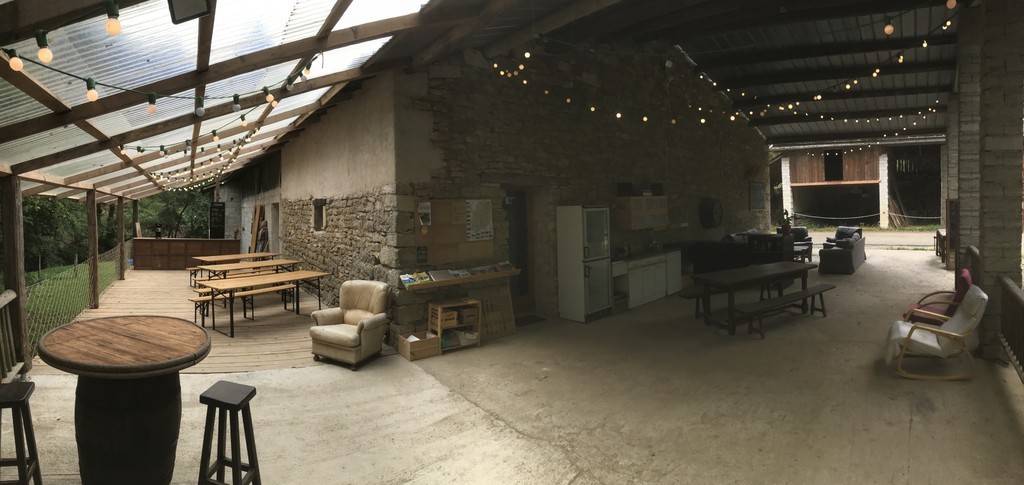 Vous pouvez séjourner dans le mini-gîte, en chambre d'hôtes, dans l'hébergement insolite ou planter votre toile de tente sur le terrain de camping. Nous disposons d'un grand espace couvert avec un coin cuisine, canapés, tables banquet, bar, etc. Hormis la buvette et la table d'hôtes (le soir uniquement), tout est compris dans le prix : utilisation des vélos, du lave linge, des jeux, le parking, l'électricité, etc.