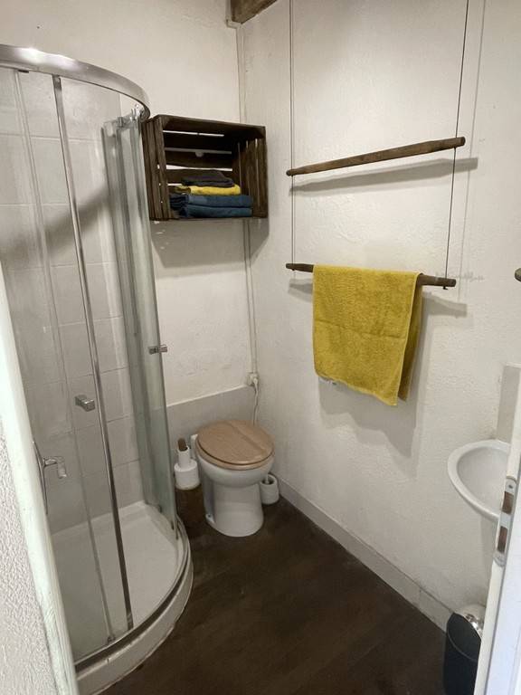 Vous profiterez d’un espace de vie avec cuisine et d’une salle d’eau. Montez l’échelle et vous passerez une nuit paisible dans la chambre mansardée.