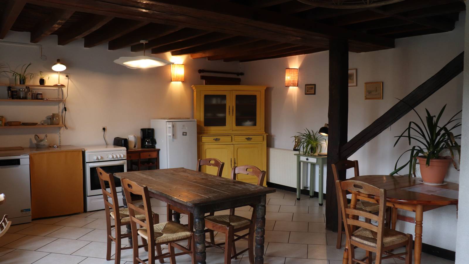 En automne et en hiver, le gîte se prête particulièrement aux séjours hors saison. La présence d’une cheminée crée une atmosphère chaleureuse, idéale après une journée de visites ou de balades, pour profiter d’un séjour reposant.