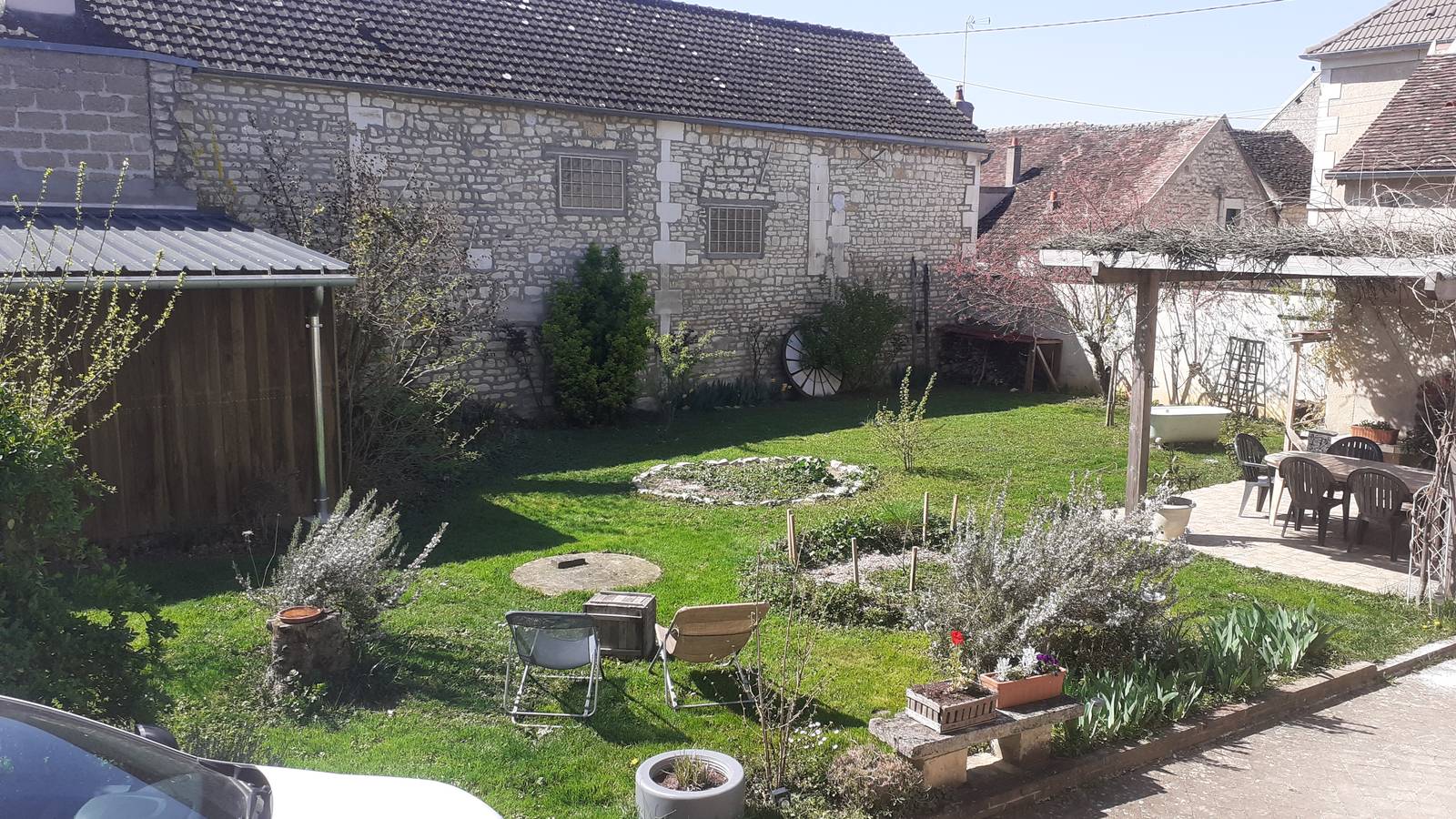 La cour et le jardin (avec les transats) sont en commun avec moi.