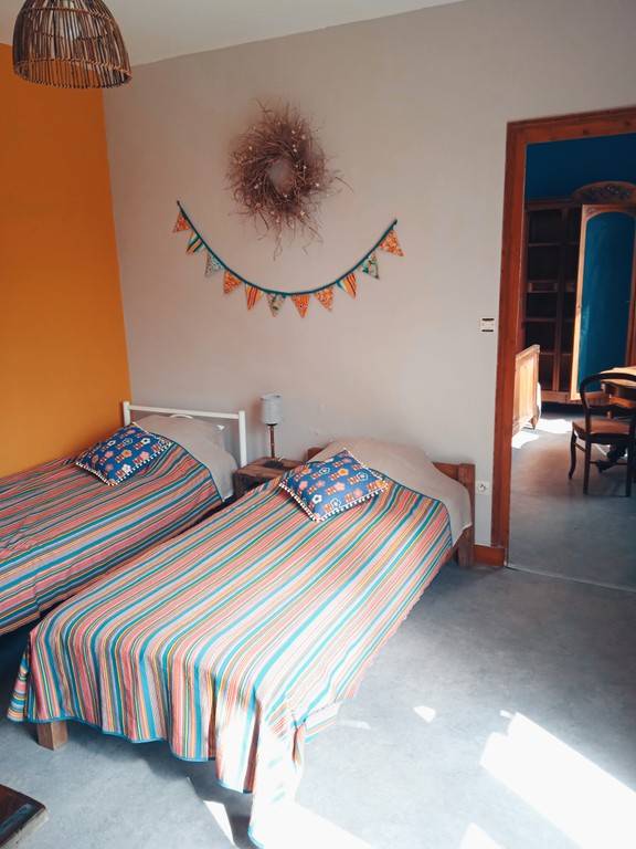Envie de vacances originales et reposantes? Venez découvrir notre gîte d'Accueil Paysan (pour des vacances autrement!) 6 pers., tout confort, jardin clos, et notre relais d'Accueil Paysan 12 pers., chambre dortoir et grande pièce à vivre, double sanitaires. Ferme labellisée AB, élevage de vaches, moutons et basse cours.