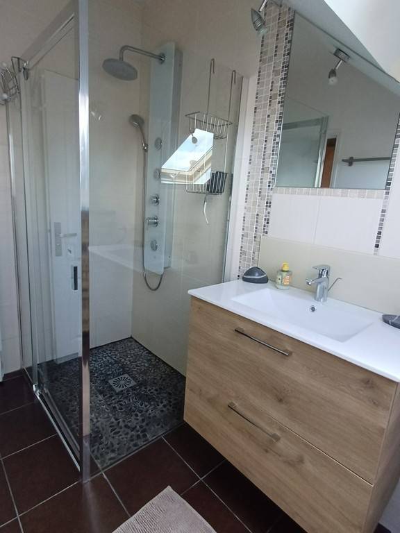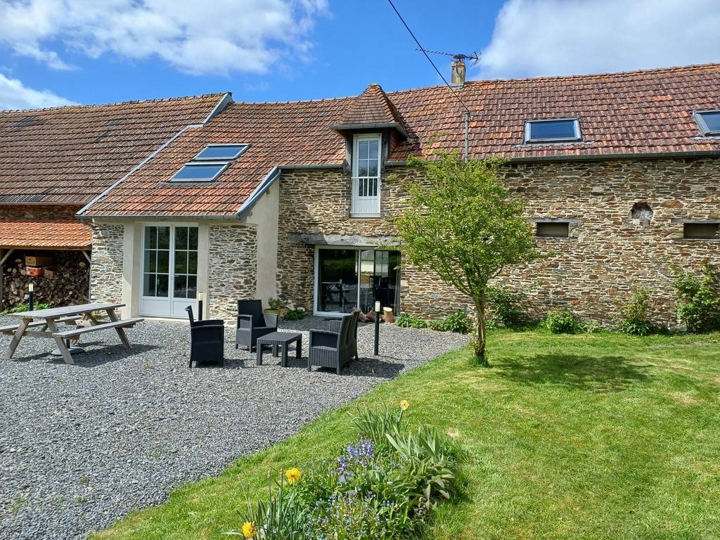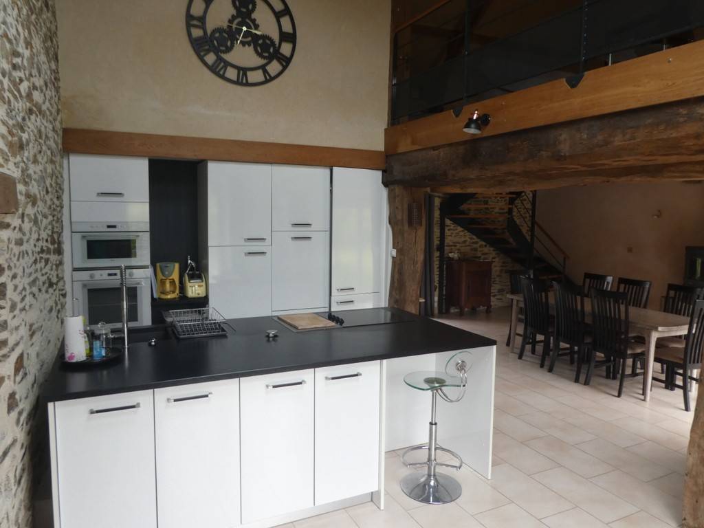 Vous disposerez d'une grande cour fermée face à un pré où se trouvent âne, moutons et chèvres. Au rez-de-chaussée, le gîte est composé d'une salle principale avec au centre un poêle à bois ainsi qu'une cuisine aménagée, une buanderie et wc. Au premier étage, deux chambres, une salle de bain, et salon/mezzanine.