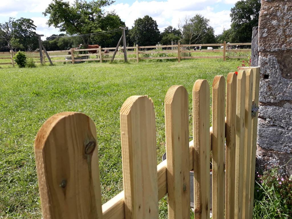 Sur une ferme laitière en agriculture biologique, niché dans une oasis de verdure, beau gîte gai et spacieux en pierre de pays avec magnifique cuisinière à bois chauffage central, et son four ! Cuisinière et four électrique, robot multi-fonctions mixeur/plongeur à soupe, cuit vapeur, service raclette et fondue, nombreux moules à gâteau, livres de recettes Avec nombreux jeux de sociétés, jouets, puzzles, écran plat, chaine hi-fi. Comprend les lits faits pour votre arrivée ! Nous vous proposons une arrivée en douceur. Sur réservation repas et petits-déjeuners.