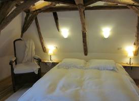 Vous ne vous sentirez pas à l’étroit dans cette grande chambre en suite de 60 m². Située au sein d’une propriété en pierre de pays datant du 18ème siècle, elle allie charme authentique et confort moderne pour un séjour inoubliable. La chambre offre un très grand balcon-terrasse, un espace de détente extérieur cosy et reposant, où vous pourrez profiter d’une vue imprenable sur la nature environnante.