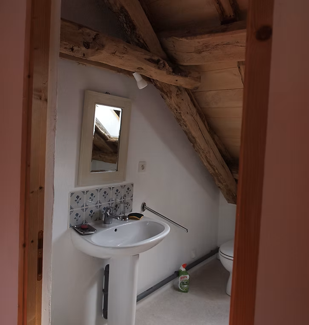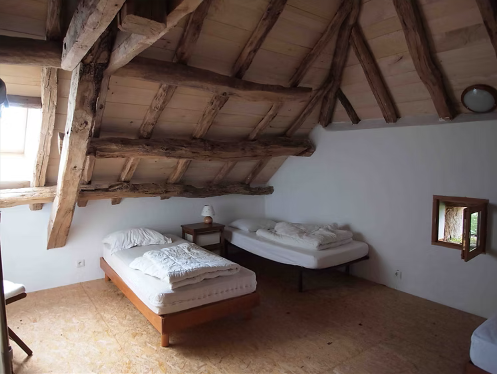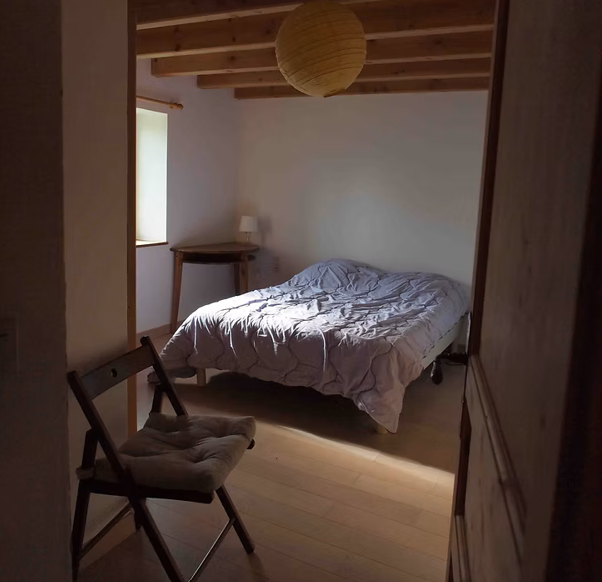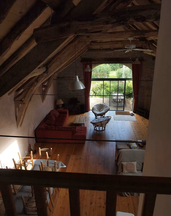 Quand nous étions enfants, c'était là ou l'on rentrait le foin pour l'hiver. Transformée depuis 2008, cette grange conserve la charpente d'origine et offre un grand volume agréable à vivre. Cette restauration réalisée par notre père a été faite avec des matériaux nobles et écologiques (bois, pierre, laine de bois, chanvre, chaux).