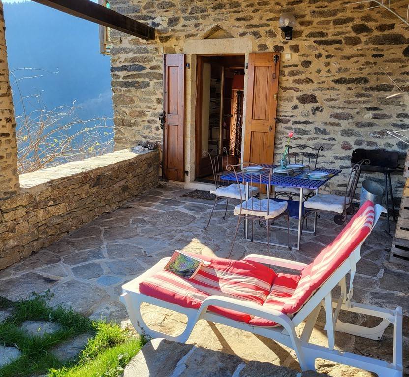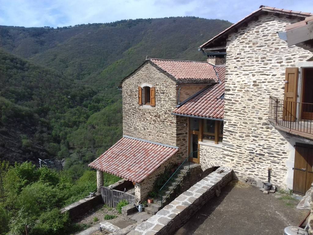 Nous avons restauré une ancienne ferme située dans le hameau "Le Frontal", altitude 600m, accroché à la pente au milieu des châtaigniers et des terrasses au-dessus de la rivière " Ganière"- Altitude 600m.