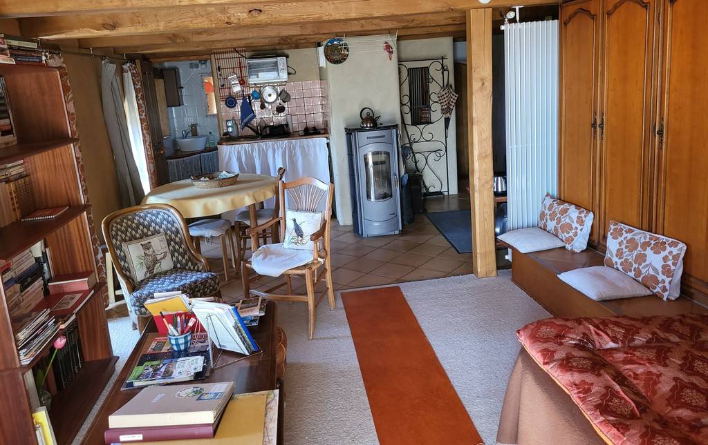 Les fenêtres sont au sud, la terrasse couverte est orientée sud-est, avec belle vue sur la vallée de la Ganière et l'Ardèche proche. Chauffage au bois par un poêle. Eau chaude solaire en partage avec notre habitation.