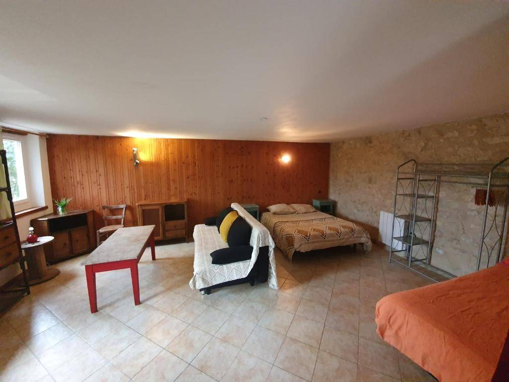 A la ferme, une longère en pierre de taille où l'on élève des agneaux BIO. -Un Gîte avec entrée indépendante qui comprend une cuisine/salle à manger + 1 chambre/salon avec sanitaires et douche individuelles + Terrasse. (capacité 2 à 4 personnes) -Une chambre Paysanne avec entrée individuelle qui comprend une chambre/salon + salle de bain et toilette séparé. En formule chambre d'hôtes lits et ménages compris. Possibilité de réservé le petit déjeuner à 8 euro/personnes à disposition. Minimum 2 nuits (capacité 2 à 4 personnes) -Gîte + Chambre Paysanne (capacité 4 à 8 personnes) selon disponibilité Cavaliers, randonneurs, VTT en étape bienvenus