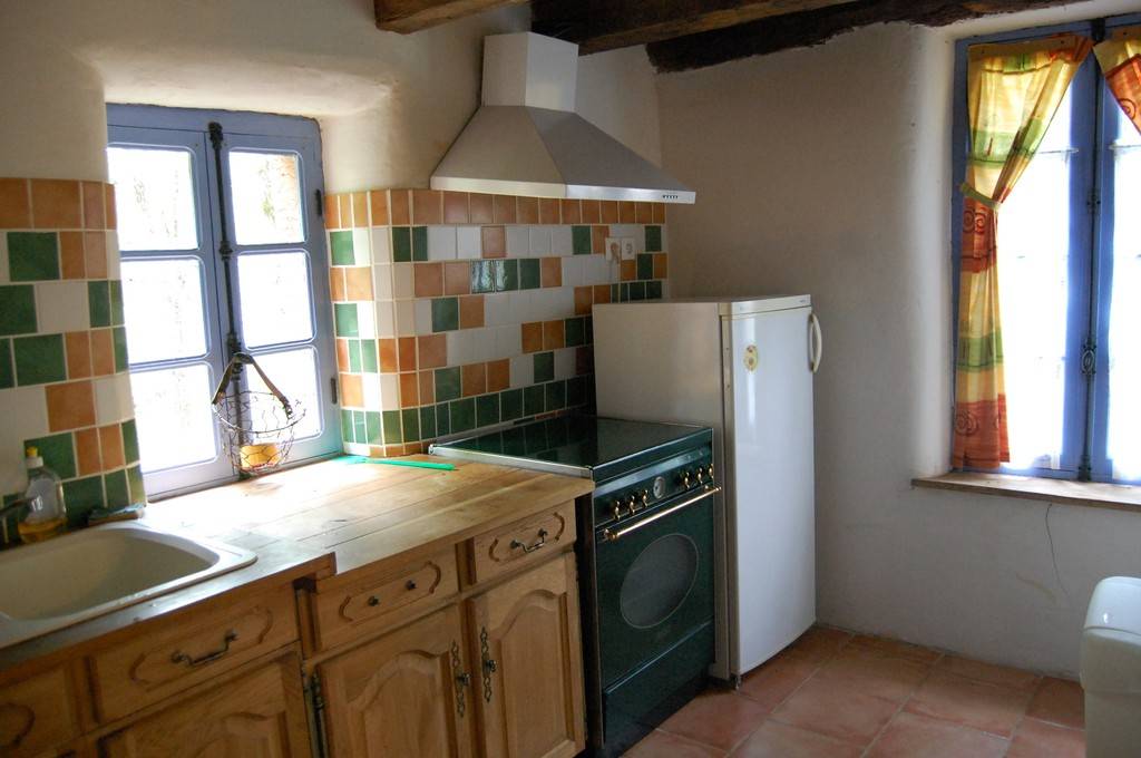 Au rez-de-chaussée, vous trouverez la cuisine équipée d’une gazinière avec four et 4 feux, un frigo avec petit congélateur, un évier 2 bacs ainsi que tous les ustensiles nécessaires à votre séjour.