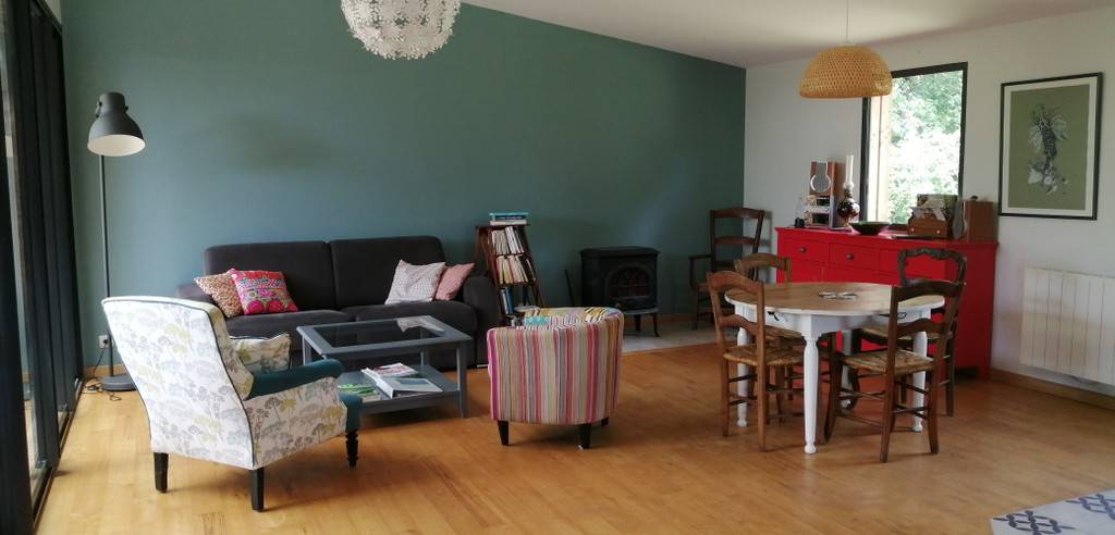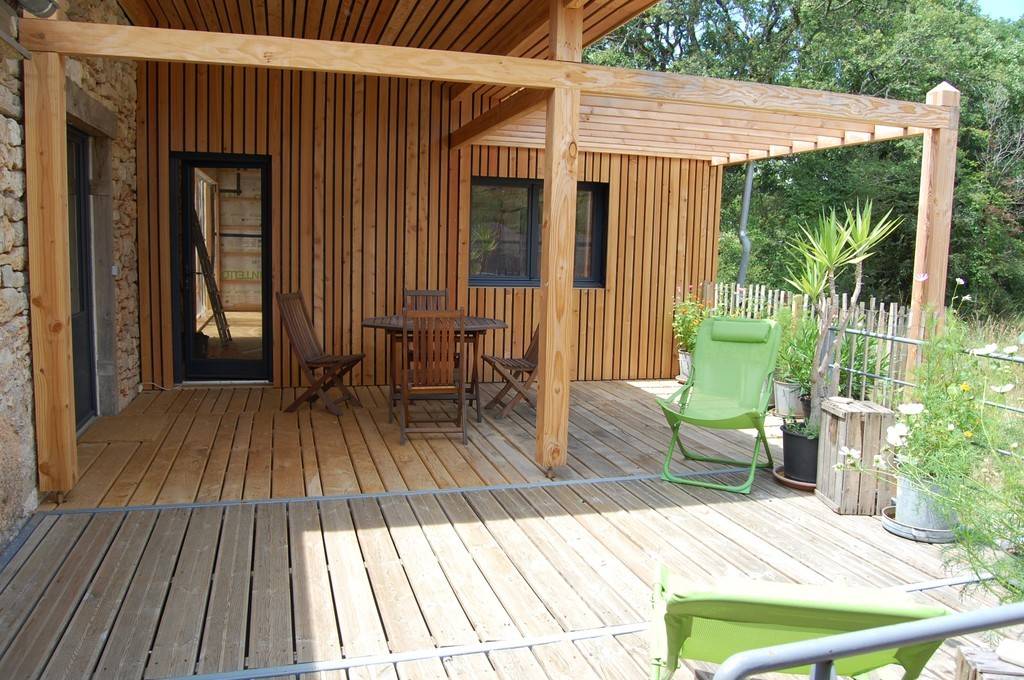 Sur le flanc d'une ancienne grange rénovée de façon écologique, une extension bois moderne et fonctionnelle vous apportera luminosité et confort. Un grand séjour et une cuisine intégrée sont à votre disposition, ainsi que de nombreux jeux de société (attention, wifi mais pas de télévision). Deux chambres séparées dans la partie ancienne vous assureront fraîcheur et intimité. Vous pourrez profiter du lever du soleil comme du couchant grâce aux deux terrasses en bois (dont une couverte).