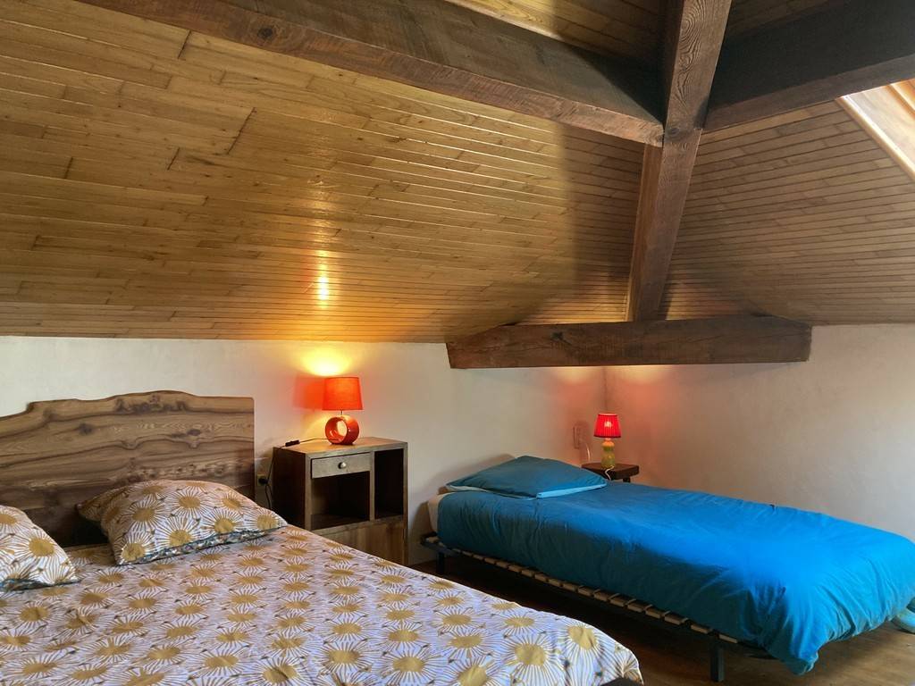 En agrobiologie depuis 1990, Eric élève des vaches de race Aubrac et produit une viande de qualité, en vente directe. Il a gardé l'esprit et l'authenticité de la ferme transmise par sa grand-mère. Les 2 gîtes mitoyens peuvent être loués séparément ou ensemble permettant d'accueillir aussi bien des voyageurs solos, en famille que des groupes de 12 à 14 personnes