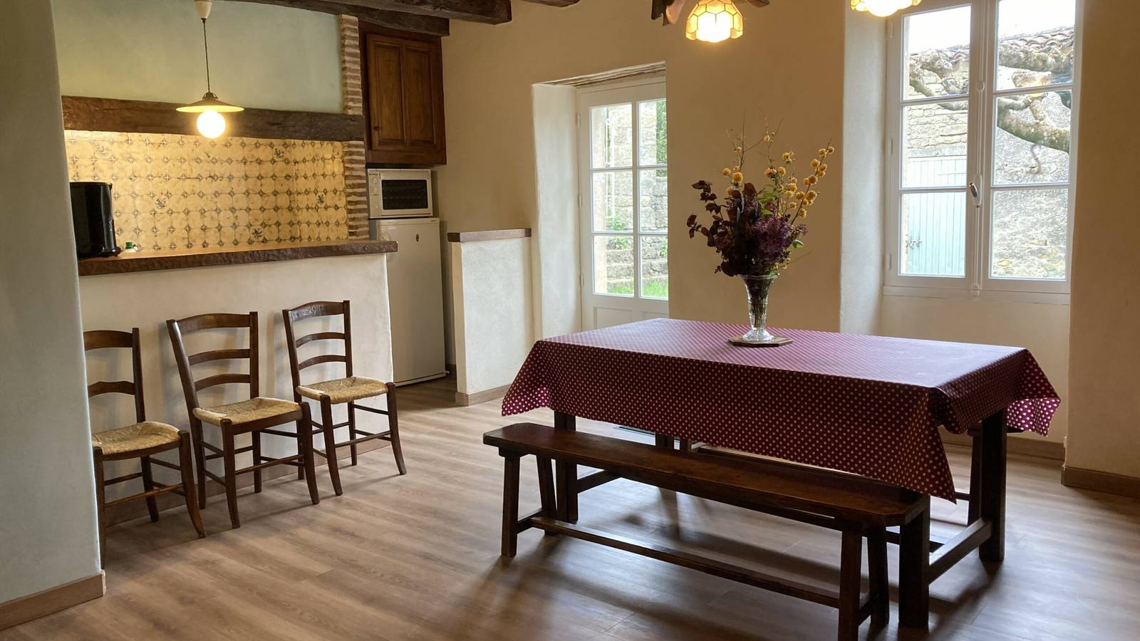 Gîte au coeur de la ferme pédagogique avec une terrasse ombragée et un grand espace de vie au RDC