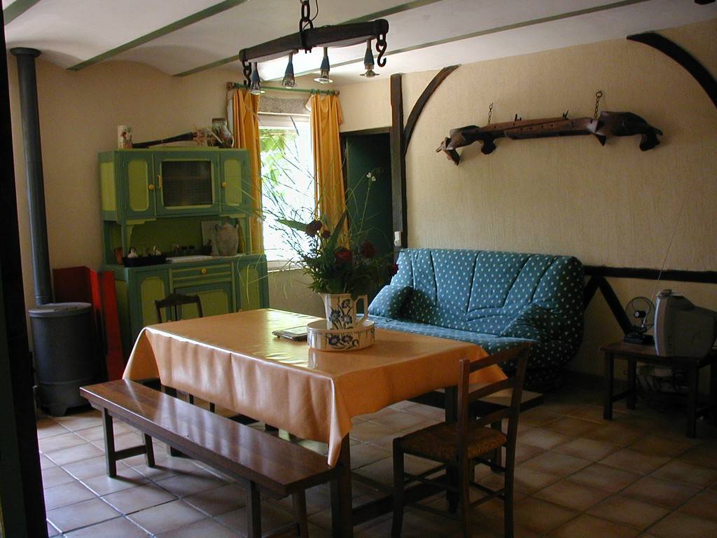 Gîte d'Accueil Paysan : 90m2, grande salle avec cuisine équipée, canapé-lit, lave-linge, sdb, douche, WC, salon de jardin,terrasse. 1 ch, 1 lit 140,1 ch. 3 lits 90 + 1 lit 120. TV. chauffage central et poêle à bois à bois. Cabane pour les enfants,babyfoot + tennis de table. Plantes ornement, vivaces, arbustes et arbres. Spécialité : feuillages et écorces décoratifs du monde entier. Bassin de baignade naturelle.