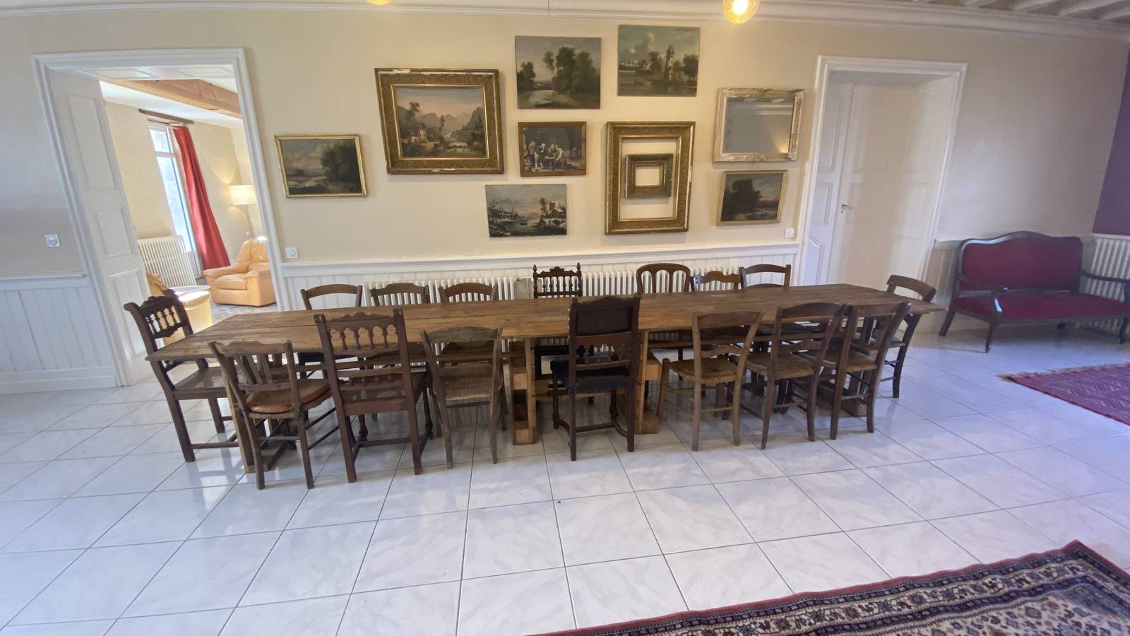 - Un grand hall d’entrée de 50 m² avec salle à manger pour 15 convives et piano droit d’époque (accord « d’époque » aussi). Le hall peut être modulé en salle d’activité si besoin.