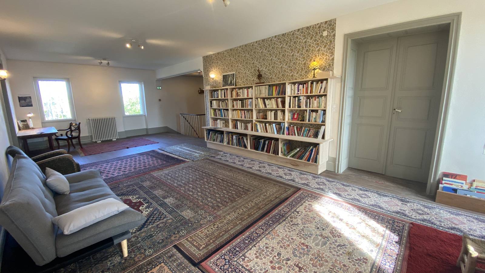 - Un salon de 35 m² avec plusieurs canapés, écran plat et lecteur DVD (pas de TV), ainsi qu’une salle d’eau attenante avec lavabo et WC. Nous prêtons, à la demande, une très grande et chouette sélection de films et documentaires de tous genres ainsi que des dessins animées de notre collection personnelle.
