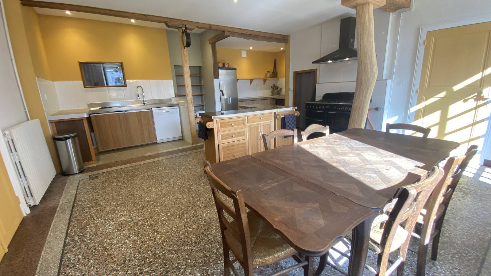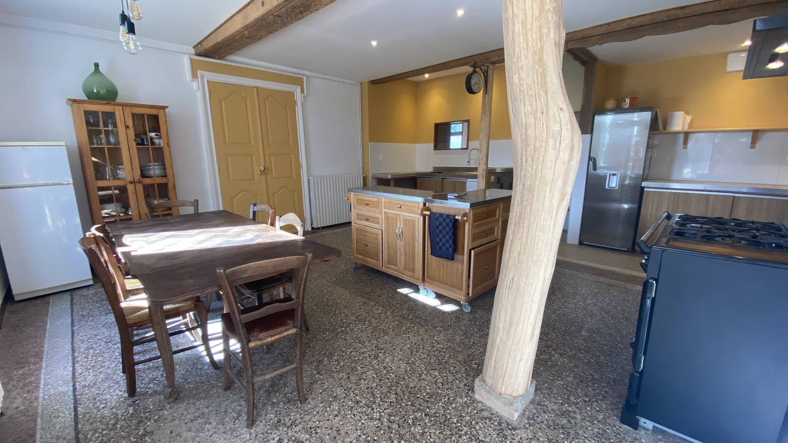 - une belle cuisine de 35m² avec piano de cuisson 5 feux gaz et deux fours électriques, un grand frigo, un frigo-congélo, un lave-vaisselle, vaisselle et équipement de cuisine complet pour 15 personnes. Un coin buanderie avec lave-linge, étendoirs et lessive est disponible.