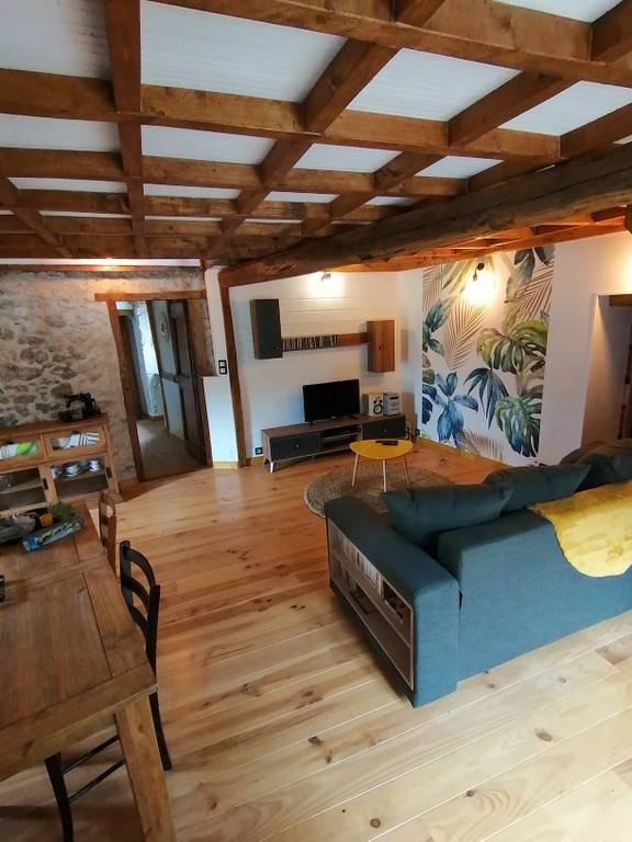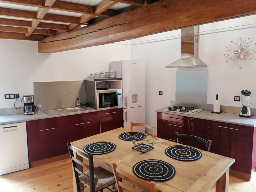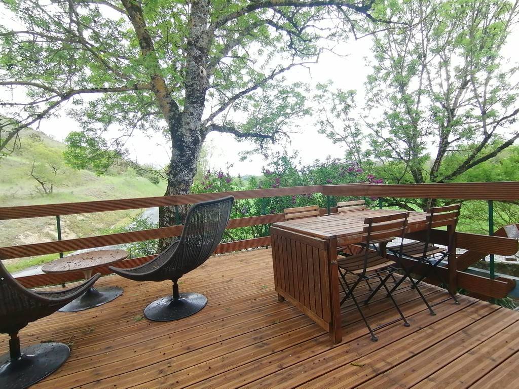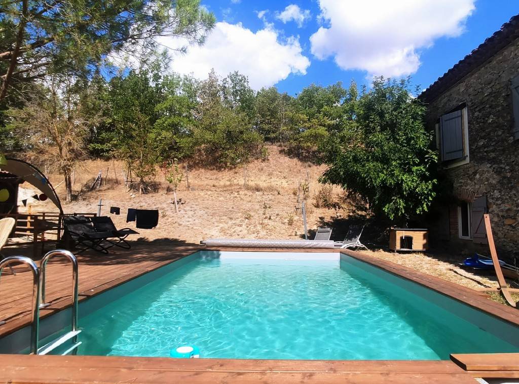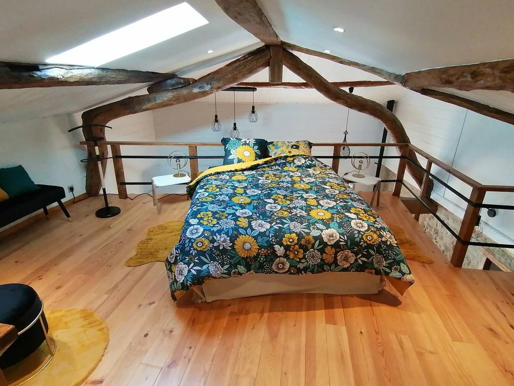 Gîte de charme dans un corps de ferme en U avec grande terrasse privative de 17m2 sous les arbres, offrant une vue sur le château de Puéchassaut. Situé au sein d'une ferme pédagogique où vivent plus de 150 animaux en liberté. Piscine en bois semi denterrée avec terrasse partagée, bains de soleil disponibles et service buvette possible. Cuisine tout équipée, chambre en mezzanine avec lit 160x200 et un salon avec canapé lit grand confort. Salle d'eau avec douche à l'Italienne. Toilette séparées.