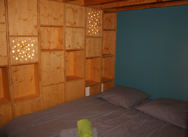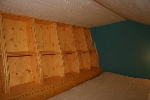 À deux pas de notre exploitation maraîchère bio, nous vous accueillons dans notre gîte à la ferme, composé d’une chambre confortable avec lit double (qui peut se moduler en 2 lits simples) et d’une mezzanine au dessus avec deux lits simples. Avec le canapé lit, le gîte peut accueillir jusqu'à 6 personne.