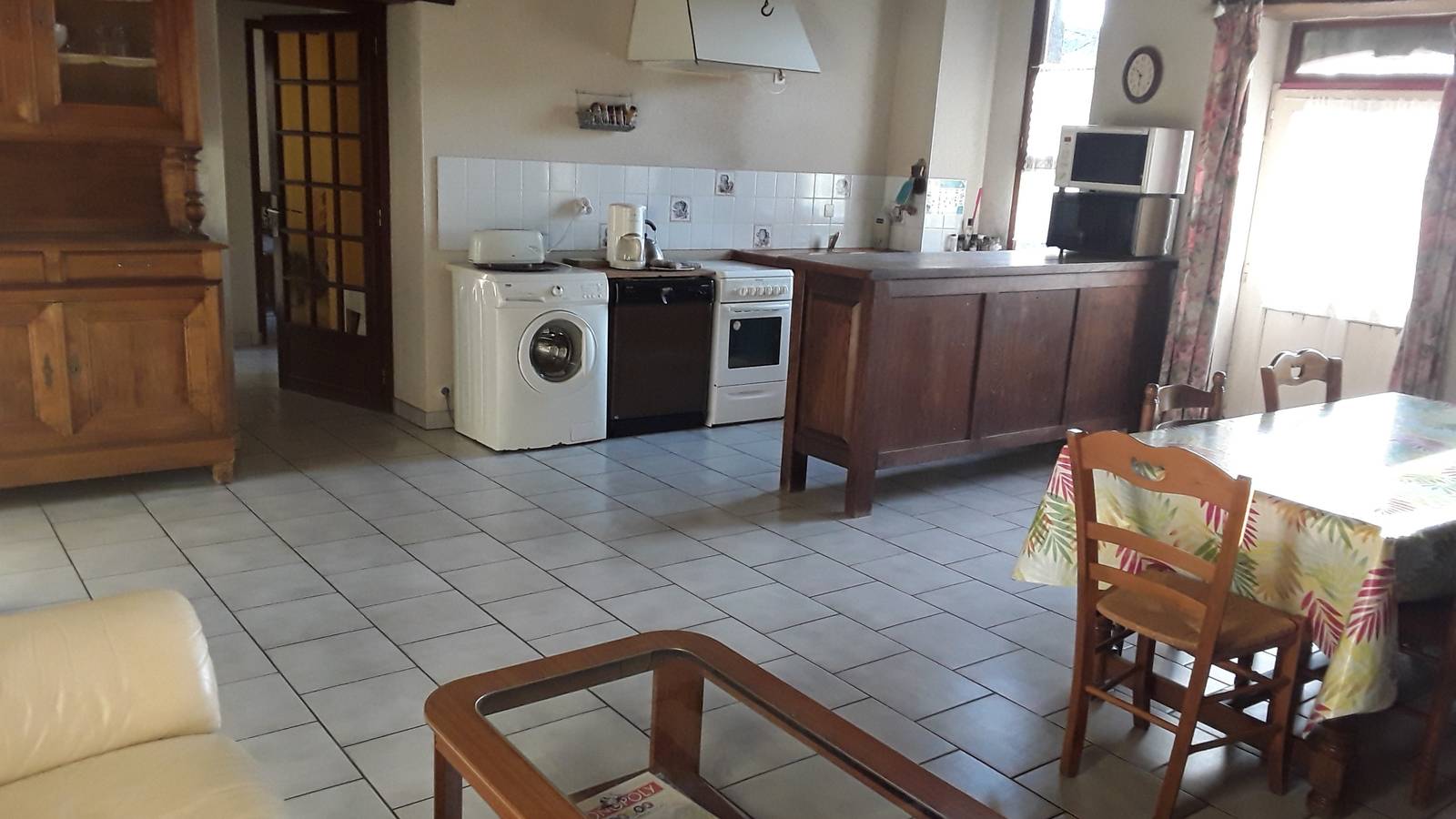 Maison de 90 m2 avec séjour cuisine, un canapé, 3 chs. dont 1 avec salle d'eau et wc privés.1 salle de bain et wc indépendants. Lave vaisselle, lave linge, micro-ondes. Salon de jardin et barbecue