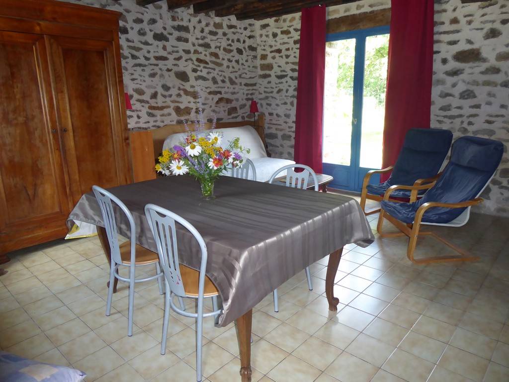 Retraités de l'agriculture biologique, notre gite est aménagé dans un ancien fournil, 2 chambres à l'étage, salle à manger, coin salon, petit coin cuisine. Grande cour arborée, avec balançoire, vélos. Petit coin tranquille clos, salon de jardin et barbecue. Site verdoyant et reposant.