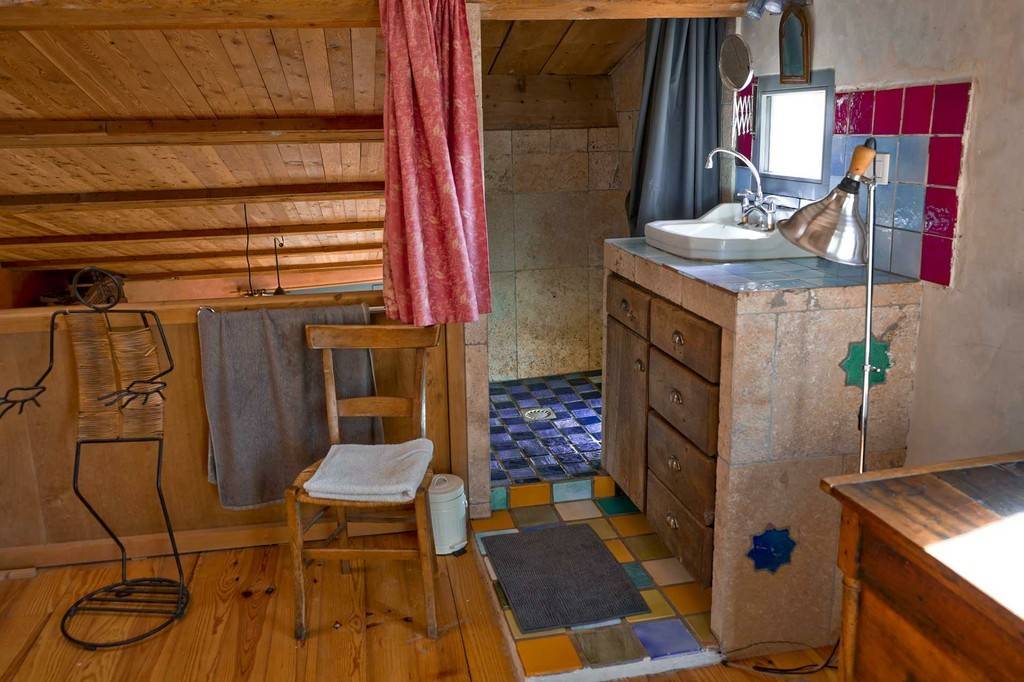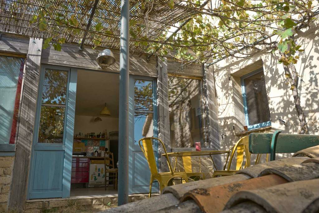 Ici, nous essorons la salade avec un vrai panier à salade à l'extérieur, et l'eau chaude sanitaires est fournie par le soleil (rassurez vous, il y a 310 jours de soleil par an). Le chauffage est au bois, et l'alimentation est issue de la ferme ou de collègues paysans alentours. Les toilettes sont sèches, le bassin est écologique (nous vous demanderons d'apporter des produits naturels pour les douches et la vaisselle).