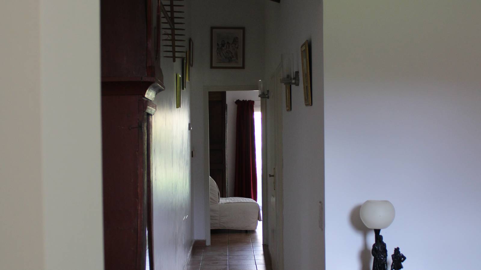 Grande terrasse plein sud avec salon de jardin. Cuisine spacieuse et très bien équipée. Salon et chambres accessibles par un escalier : 1 grand lit en 160 + 1 lit double en 160 (modulable en 2x80)