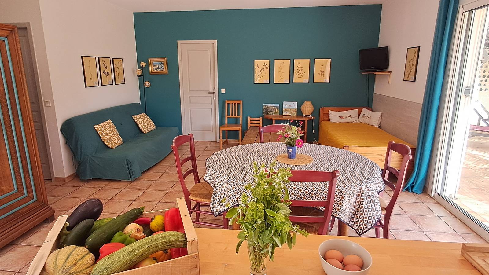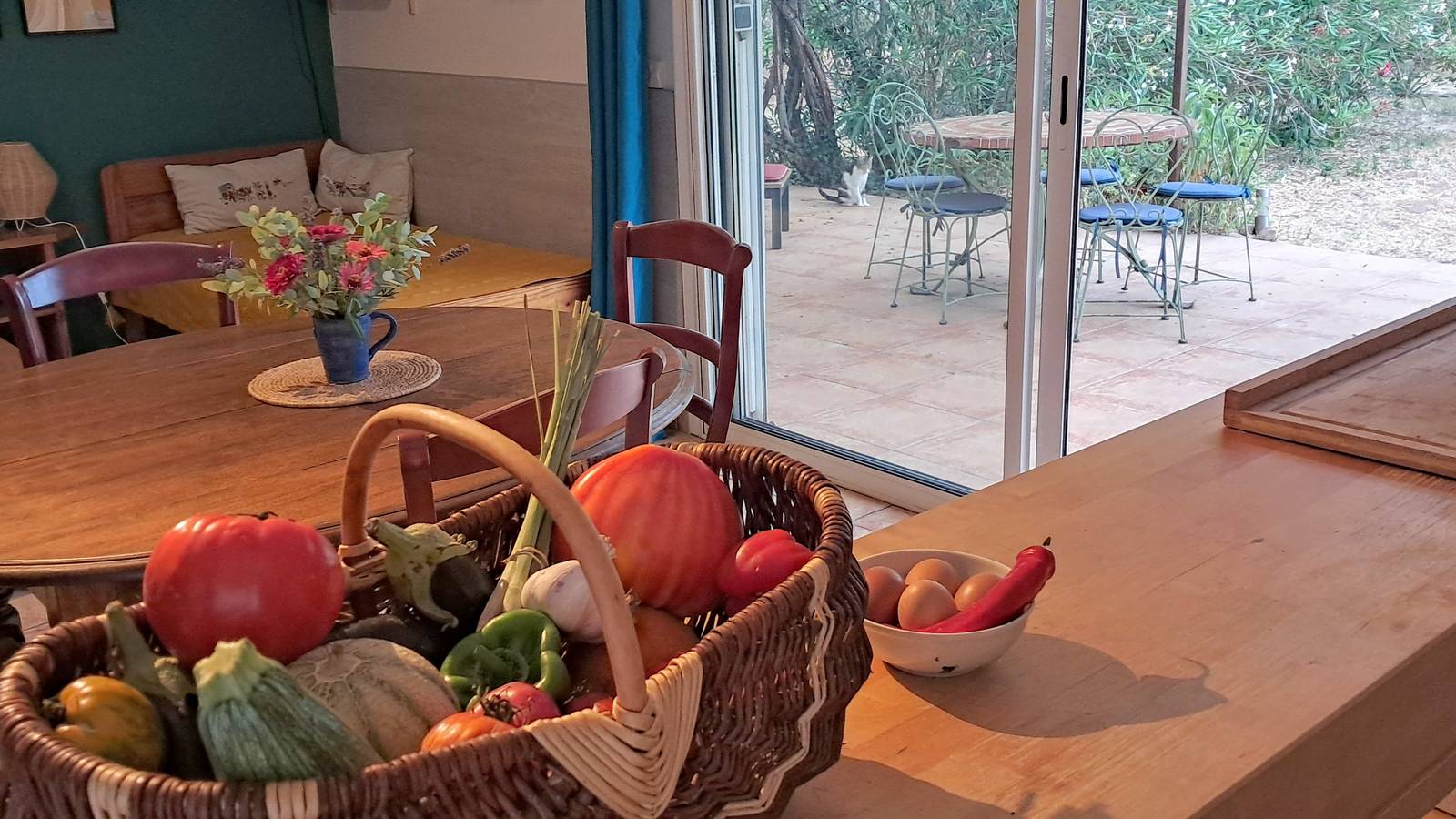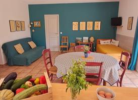Notre gîte, situé au cœur de notre ferme maraîchère, offre un cadre paisible et lumineux. Spacieux et confortable, il s’ouvre sur une grande terrasse orientée au sud, agréablement ombragée pour profiter des beaux jours.