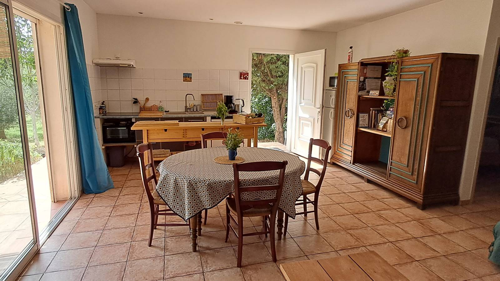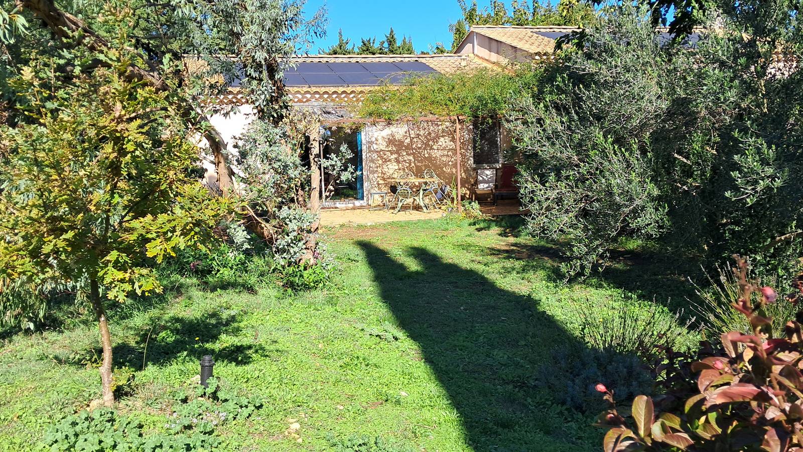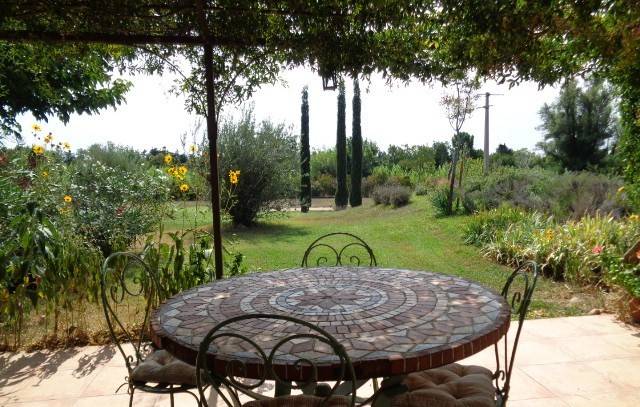 Autour, un vaste jardin et un verger d’oliviers invitent à profiter du plein air, tandis que la cour et le parking assurent un accueil pratique et tranquille.