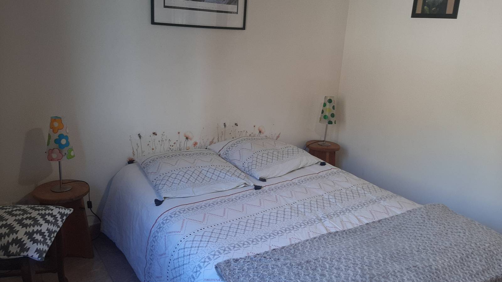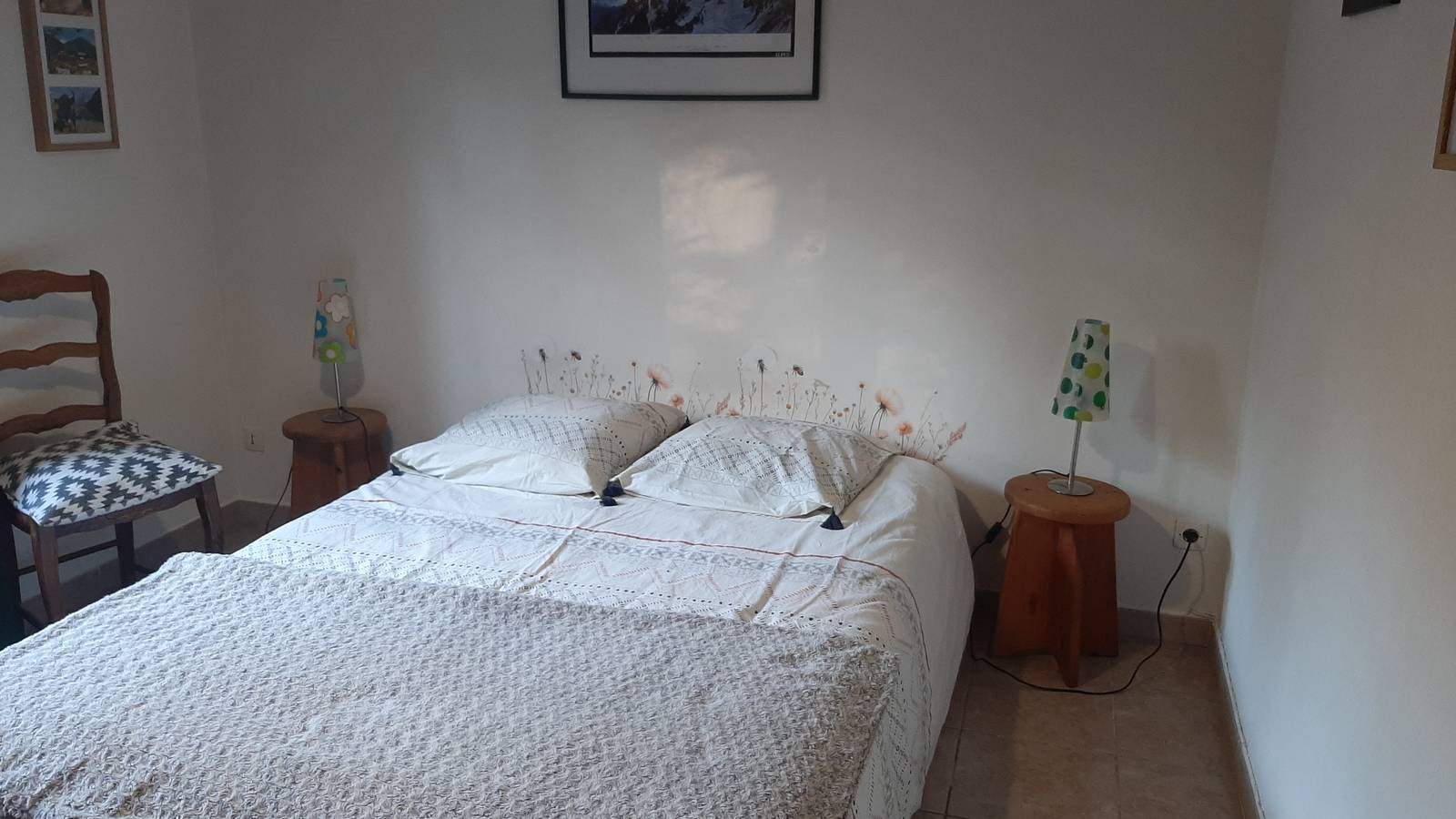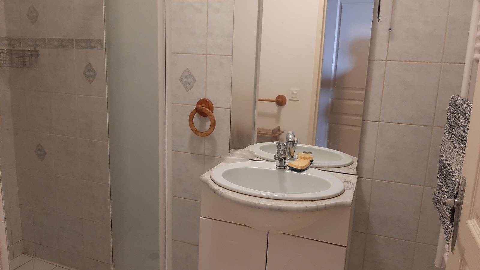 Les deux chambres sont équipées chacune d’un lit double en 140 et de grands placards muraux. La salle de bain comprend une douche à l’italienne et un radiateur mural électrique.