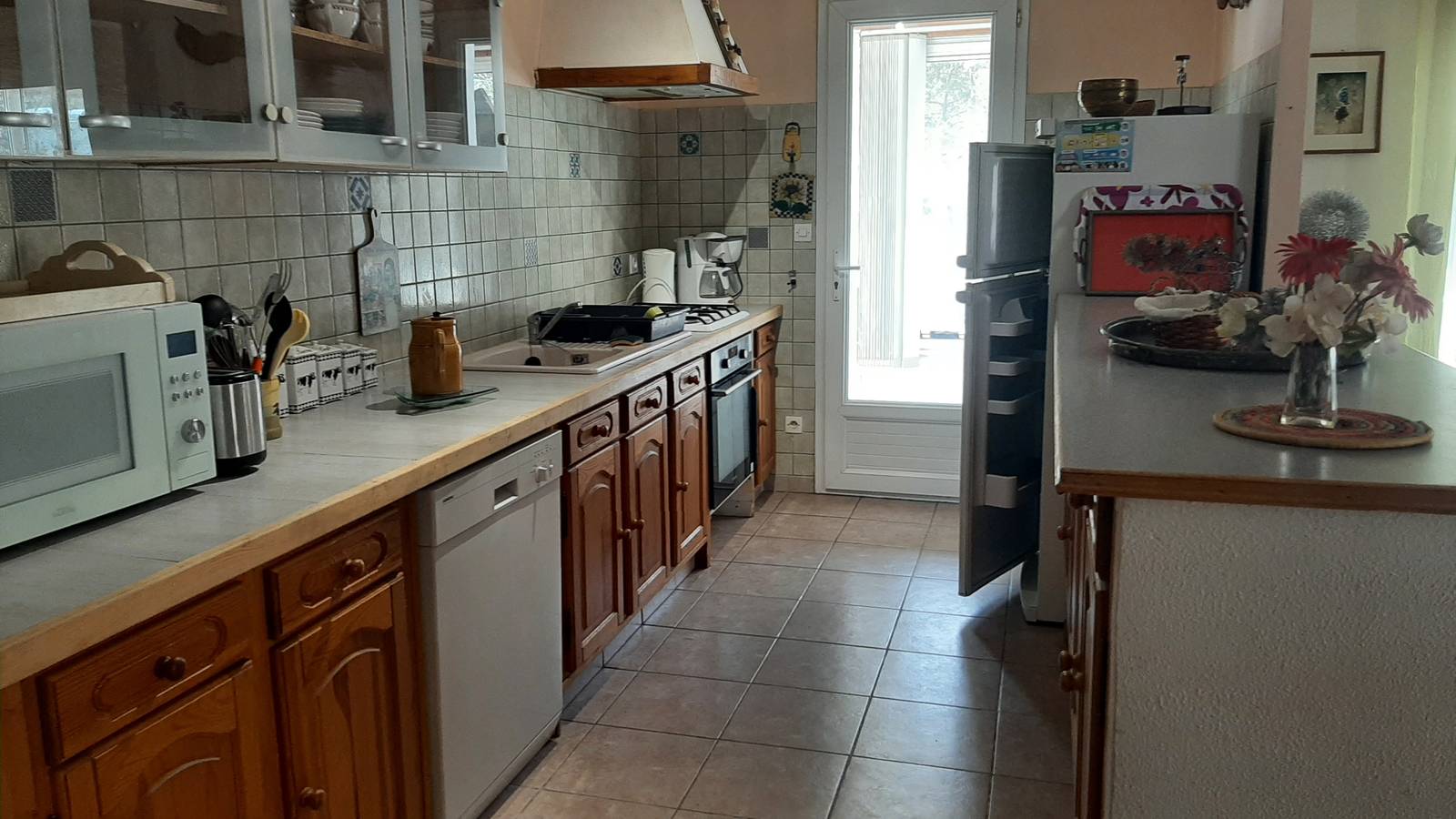 Le gîte est équipé d’une cuisine fonctionnelle avec lave-vaisselle, four, micro-ondes, grille-pain et réfrigérateur-congélateur. Le grand salon, lumineux, offre un espace confortable pour se détendre.