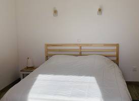 gîte pouvant accueillir 2 adultes et 1 enfant, avec terrasse ombragée ;