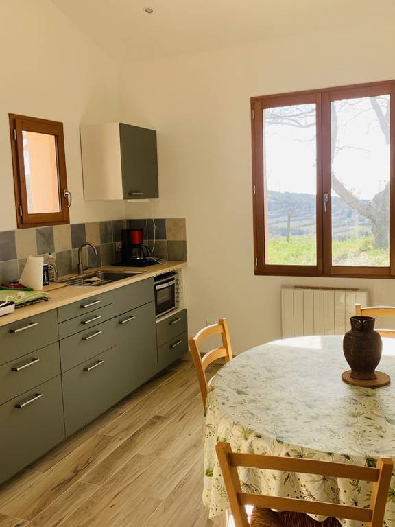 Au coeur de la colline, le gîte est voisin de mon habitation mais l'accès est indépendant. Vous y trouverez le calme de la campagne, une superbe vue sur le village et la nature avoisinante. Ce gîte peut recevoir 4 personnes et un bébé dans 60 m² . Il est accessibles aux personnes en fauteuil roulant. Le gîte est situé dans le parc naturel du Mt Ventoux ,il y a de nombreux départs de randonnées les gîtes sont loués pour 3 nuits minimum !