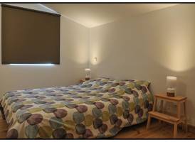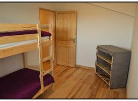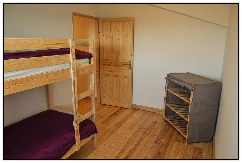 À l'étage, 2 chambres avec lit double (140 cm) et une chambre avec lits superposés.