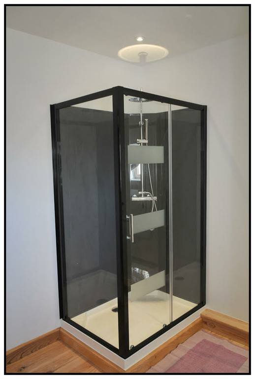 A l'étage : 2 chambres avec lit double et 1 chambre avec lit superposé, 1 salle de bain équipée d'une douche, d'un WC, d'un porte-serviette chauffant ainsi qu'une machine à laver.