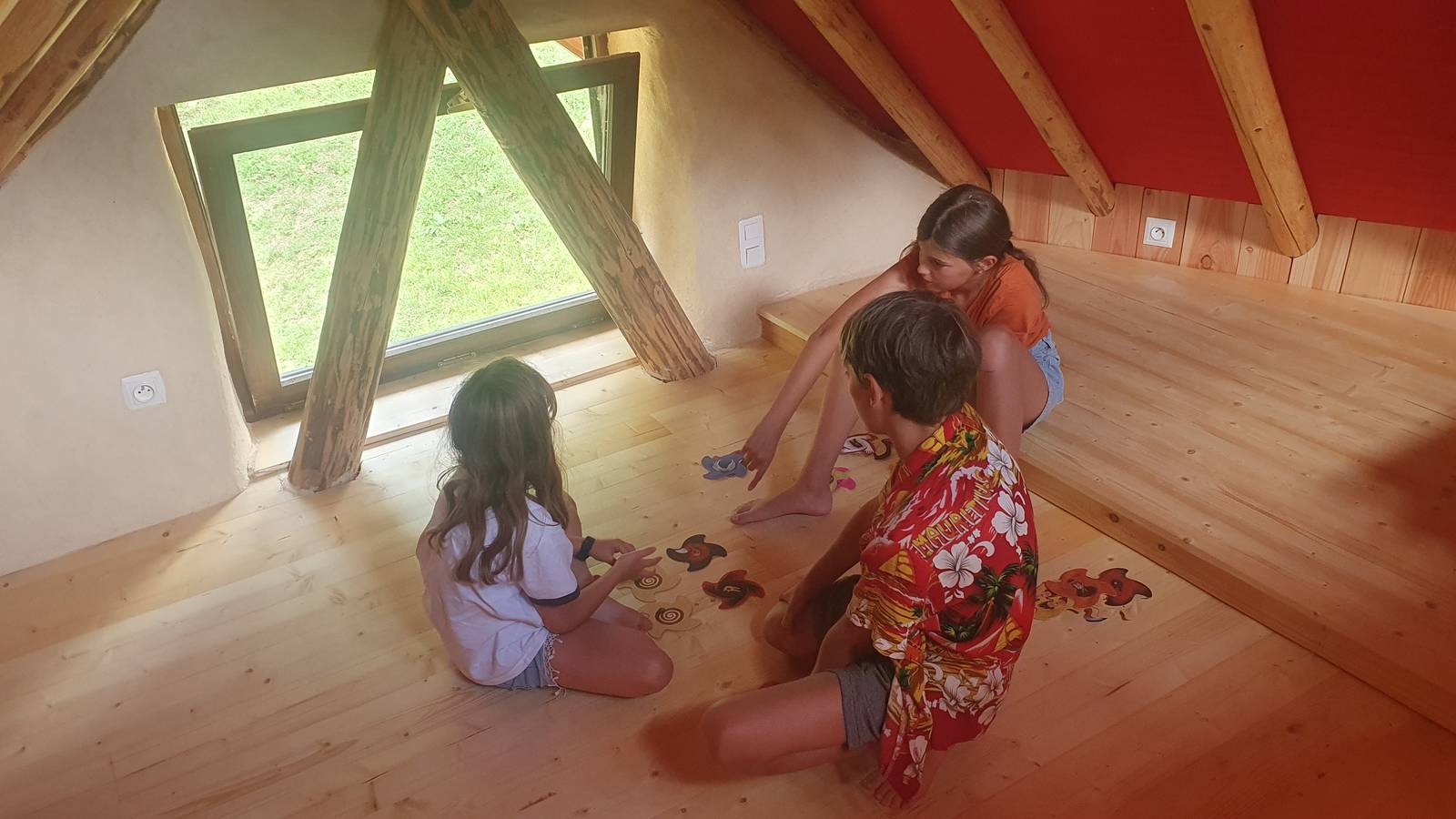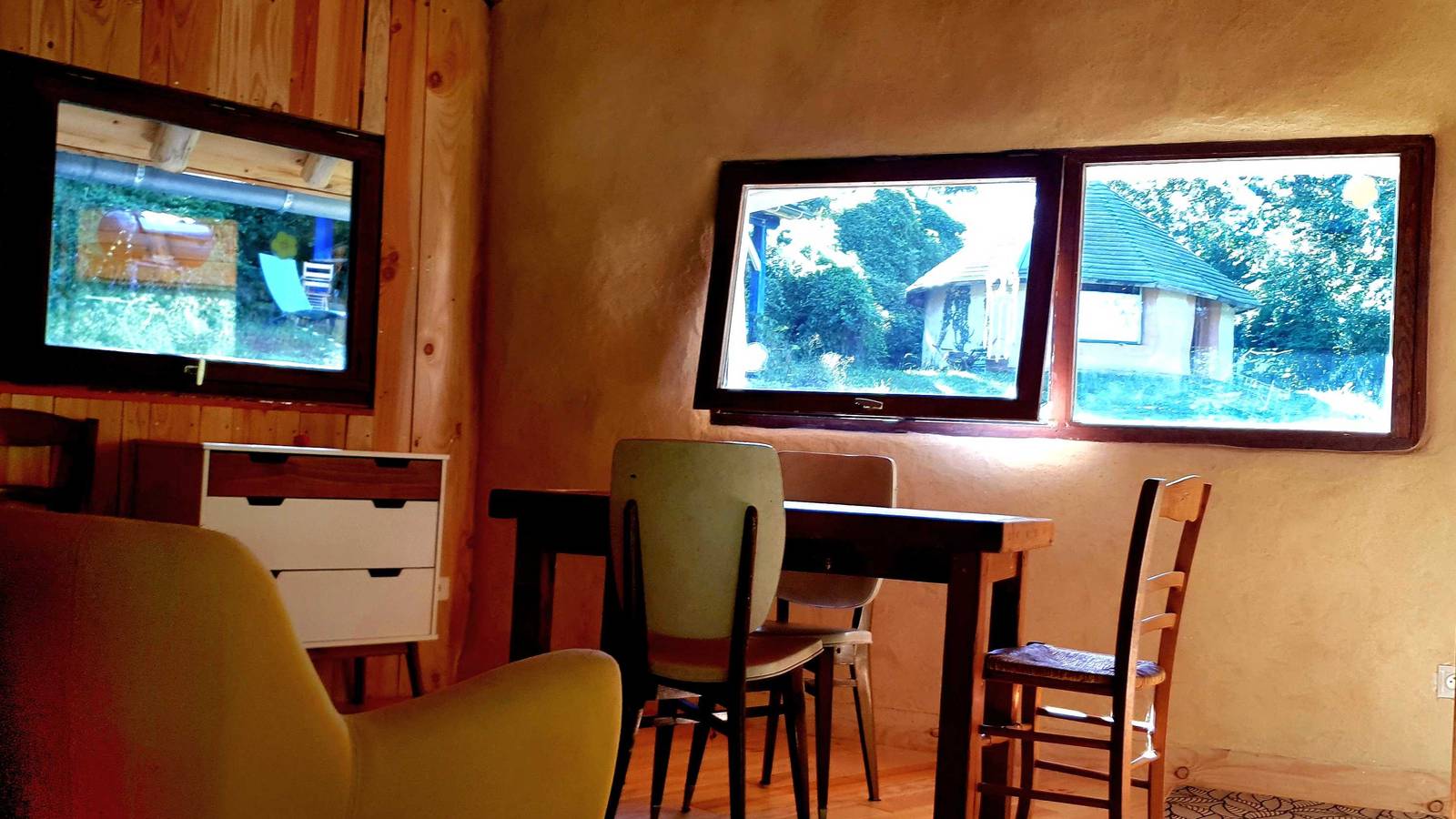 Construite en bois issu de nos forêts et paille sortie de nos champs, nous avons conçu cette cabane, nichée dans un écran de verdure, comme un lieu-refuge dans la nature. Elle est composée d'un rez-de-jardin "espace de vie + couchage (lit double)" et d'une mezzanine pouvant contenir 2 ou 3 matelas. Les nombreuses ouvertures ont été imaginées comme des points d'observation sur la forêt, le parc des cochons adjacent et les sommets du Dévoluy. Cuisine + sdb commune avec la Cabane du Renard