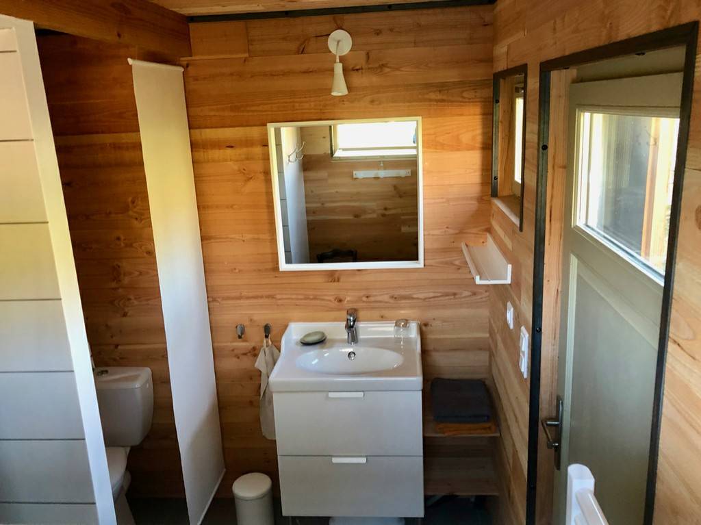 Roulotte tout en bois, isolées et aménagées avec des matériaux naturels.