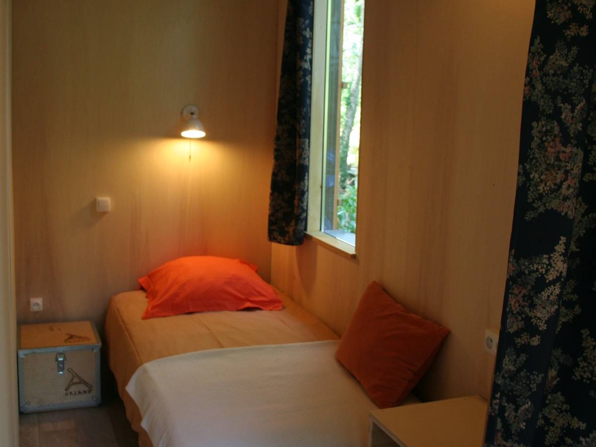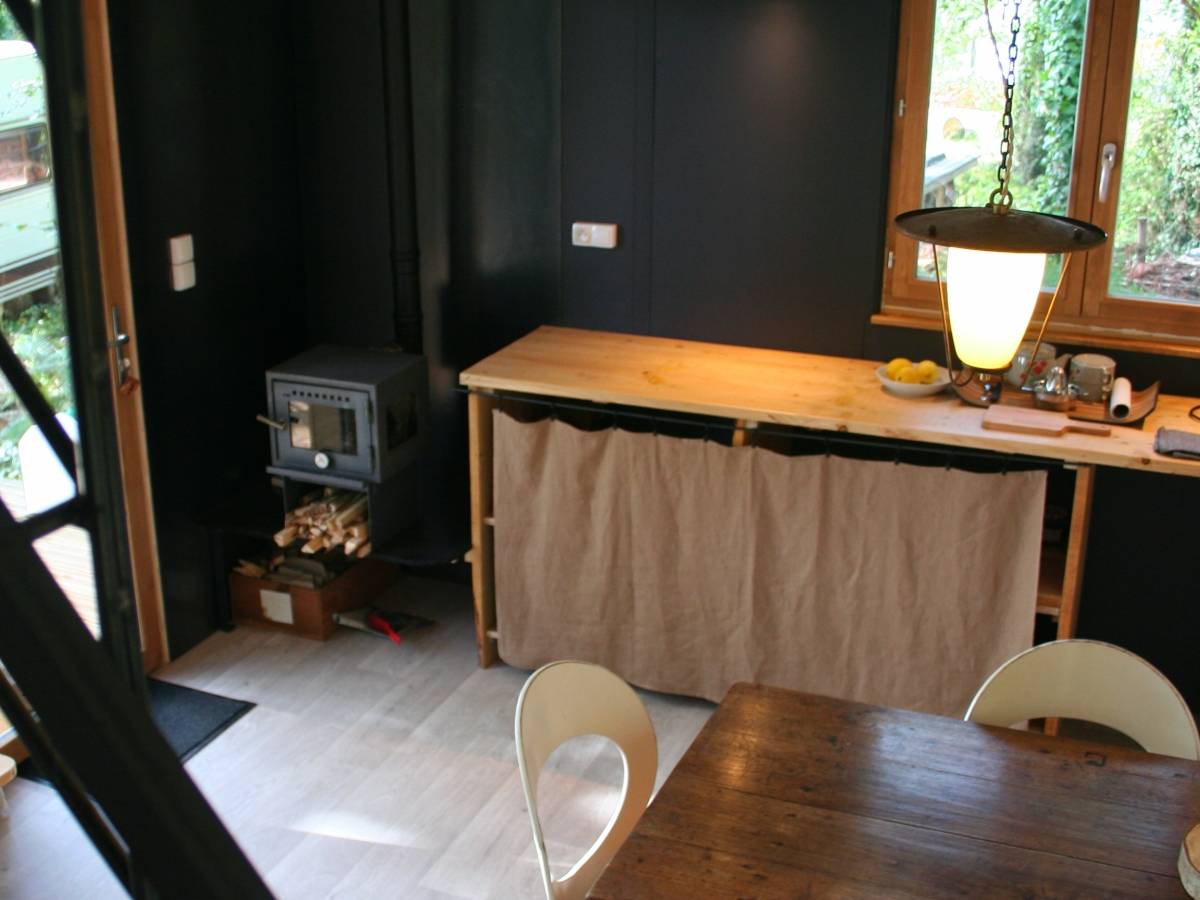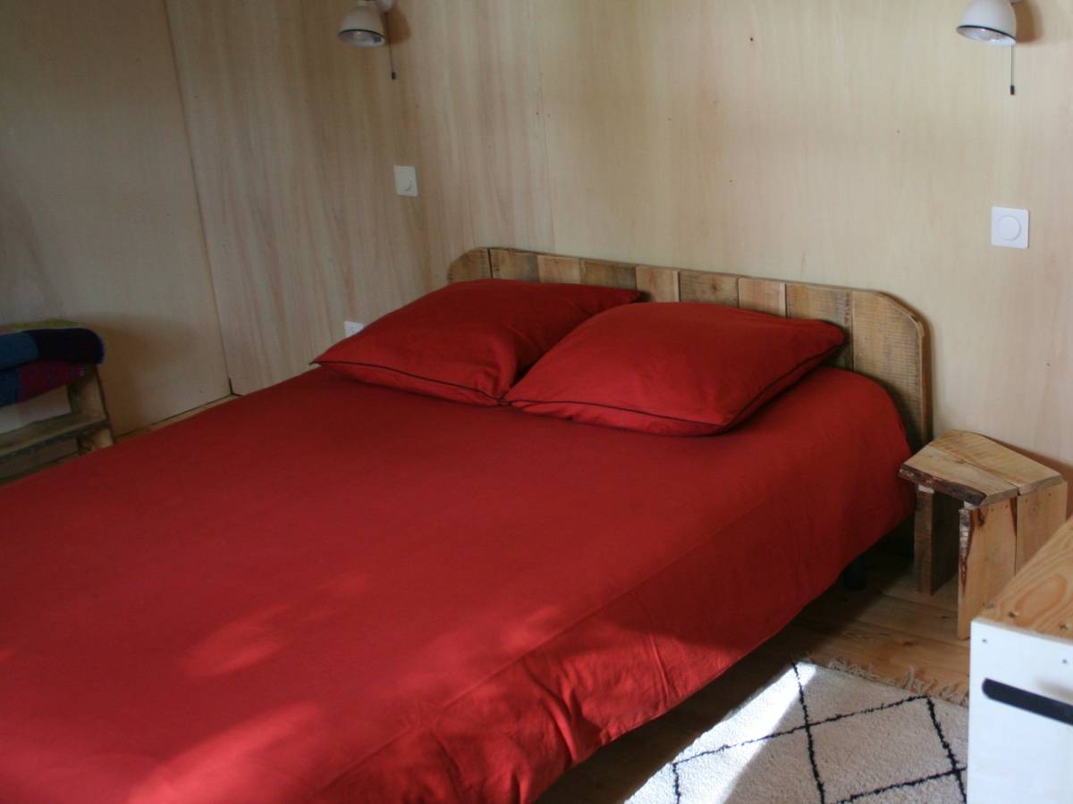 Cette cabane est équipée d’un coin cuisine comprenant plaques de cuisson, four et frigo. Une chambre à l'étage avec un lit double. Et une chambre au RdC avec un lit simple. Un petit poêle à bois vous permettra d'agrémenter les soirées fraîches (bois compris). Une terrasse prolonge l'espace de vie. Vaisselle et toilette se font à l’espace sanitaire tout près de la cabane. Lits faits à votre arrivée, prévoir vos serviettes de toilettes.