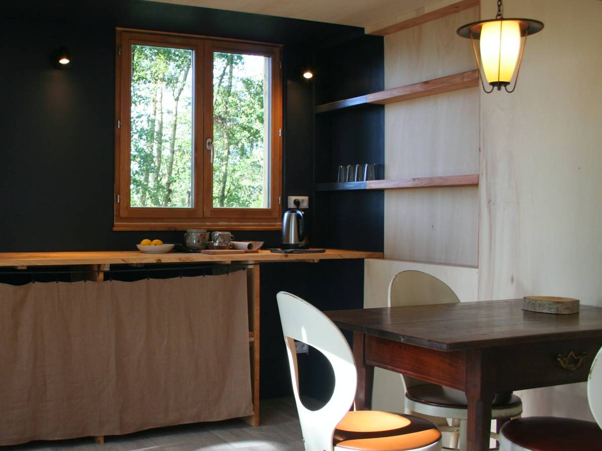 Au cœur d'une nature préservée et généreuse, Michelle et Sébastien ont crée 3 cabanes, réalisées en auto et éco-construction, isolées en laine de bois et ouate de cellulose pour vous offrir de vrais petits nids douillets. Vous replongerez dans vos rêves de cabane ! Perchées sur leurs pilotis, elles sont comme des nichoirs et vous rapprochent un peu plus des arbres et de la grande diversité d'oiseaux du lieu. C'est d'ailleurs en hommage à ces derniers que Michelle et Sébastien les ont baptisées OUNICHLIBOU, LAPINICHO et LOINICHBA. Dans un souci écologique, les propriétaires ont fait le choix de mutualiser les équipements : toilettes sèches, douches et lavabos sont partagés dans un espace dédié, (3 douches et 2 toilettes sèches).
